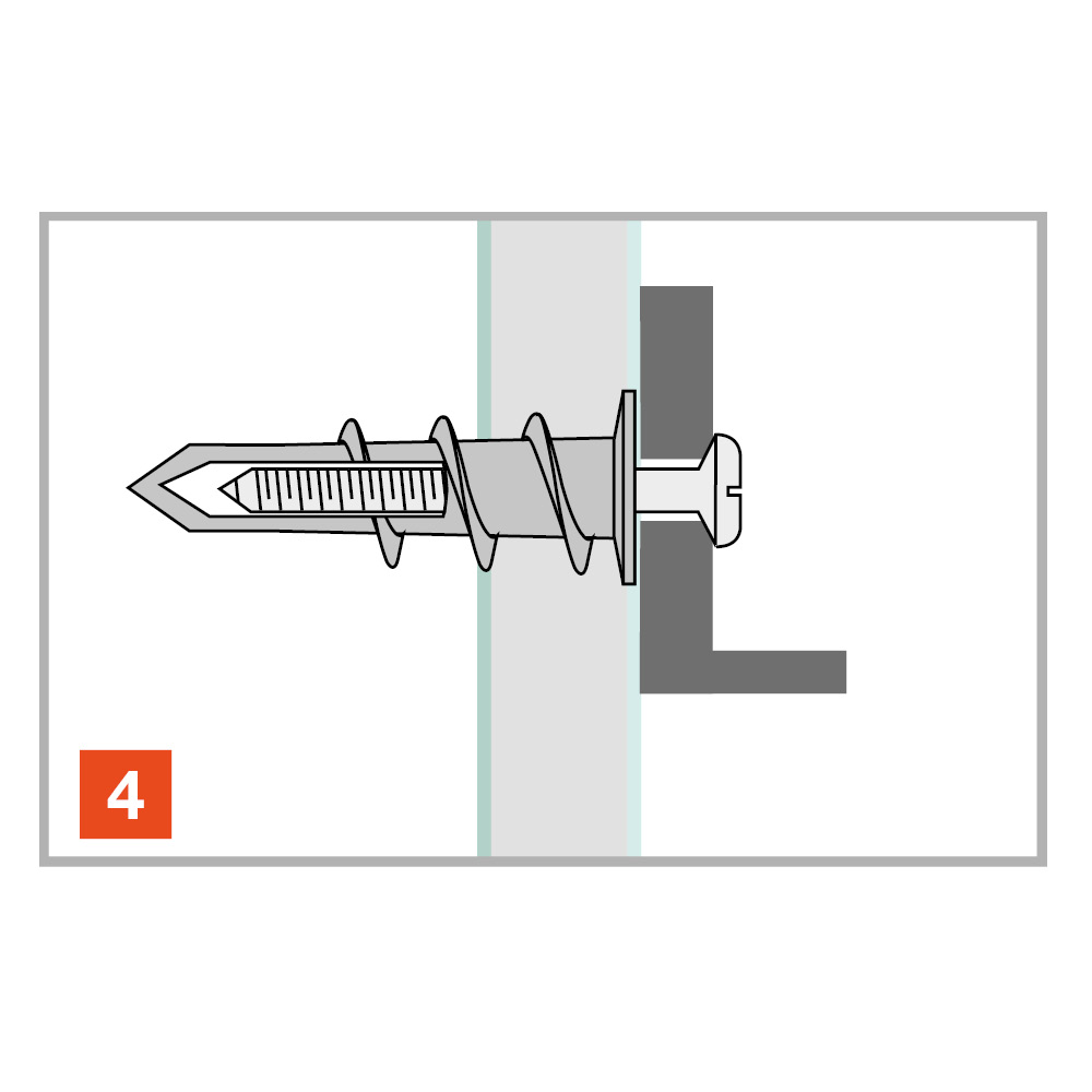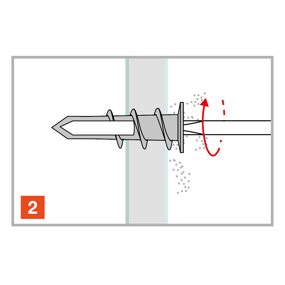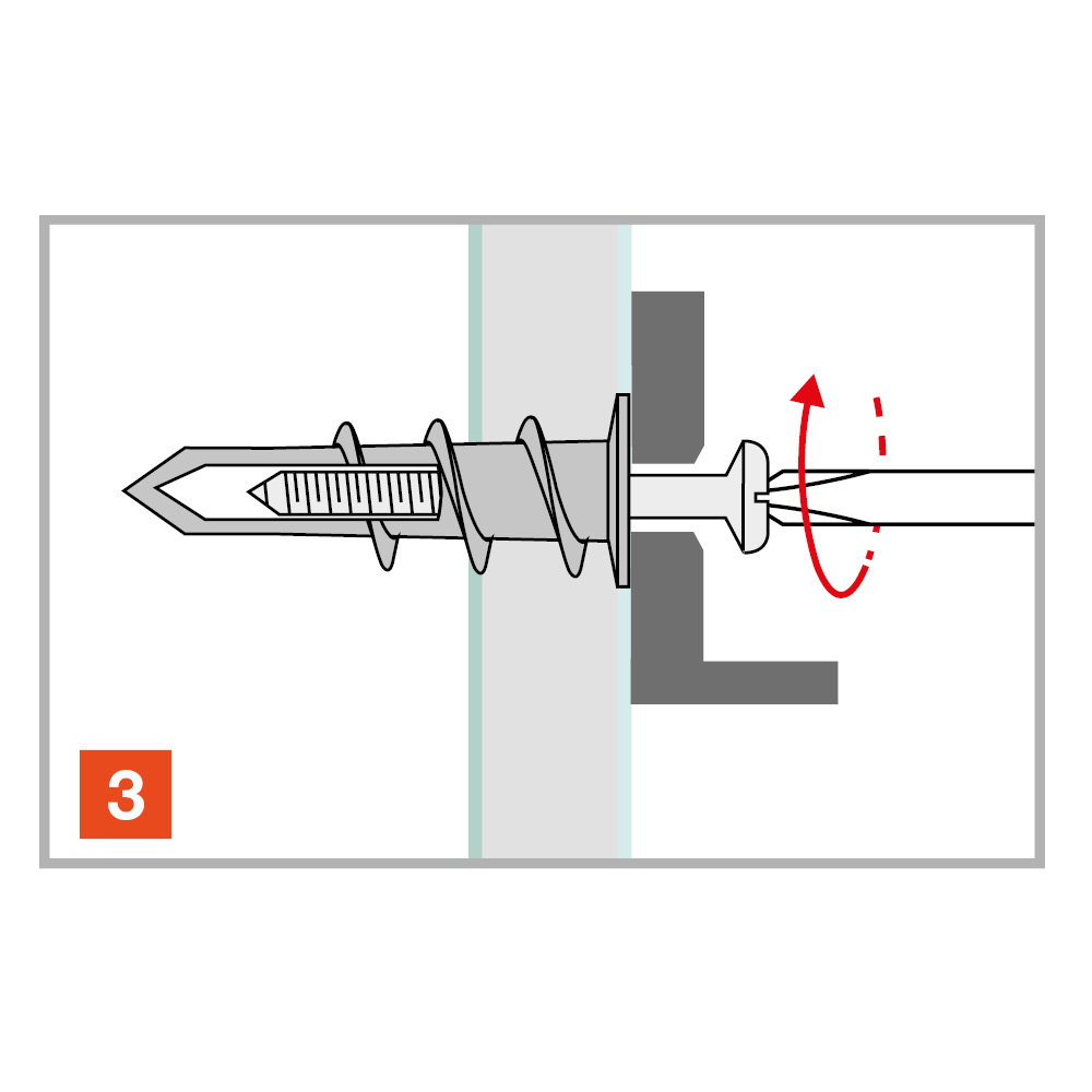 El anclaje autoperforante TRZ permite fijar rápidamente elementos sobre placas o bloques de yeso, además de sobre hormigón celular. Este anclaje se puede atornillar directamente a una placa de yeso simple o doble, con la cabeza a ras de la superficie. Después, se puede utilizar el anclaje con un tornillo para madera o acero de Ø3 a 4,5 mm.
