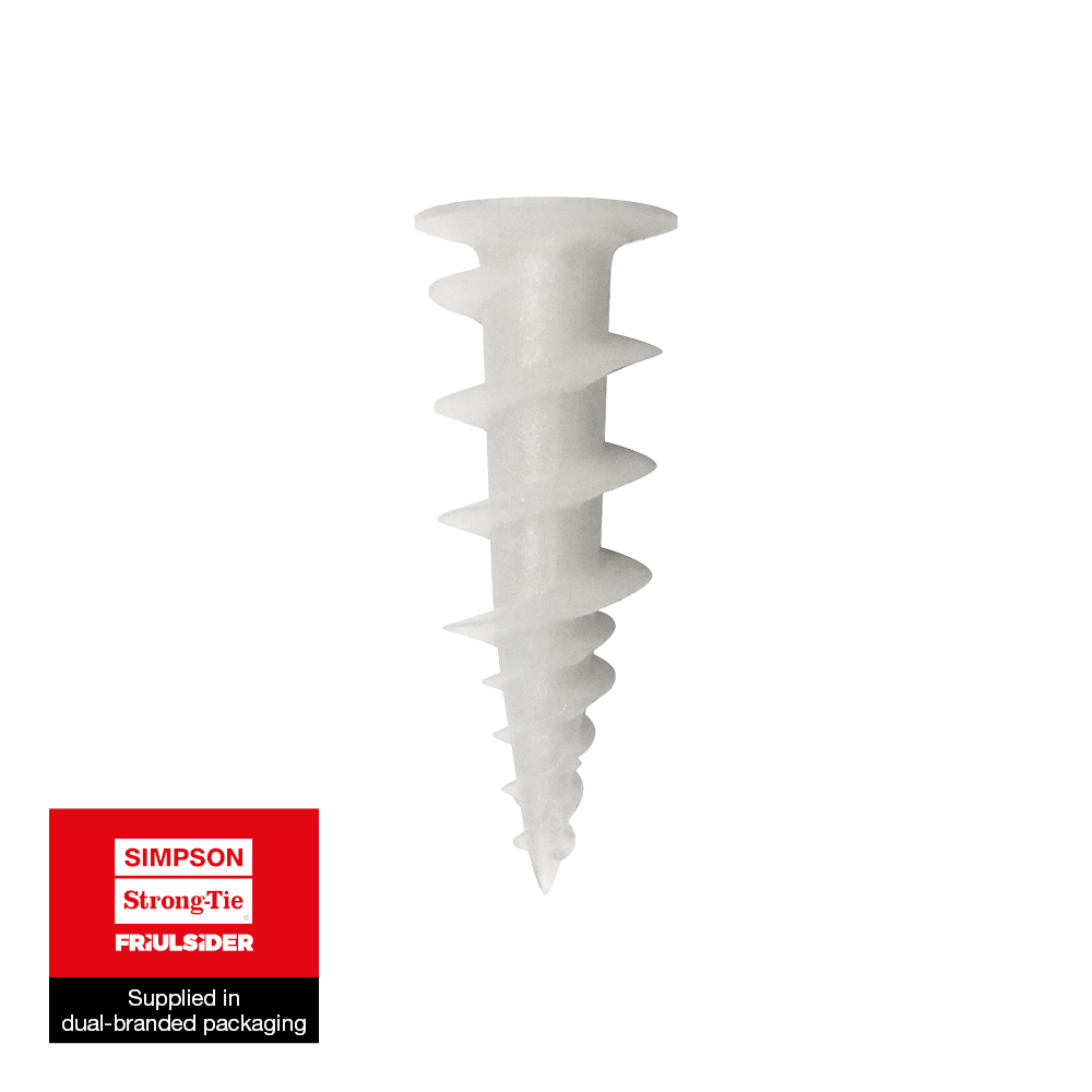 El anclaje de nailon TAN está diseñado para que se fije en placas de yeso. Este anclaje se puede atornillar directamente a una placa de yeso simple o doble, con la cabeza a ras de la superficie. Después, se puede utilizar el anclaje con un tornillo para madera o acero de Ø3 a 4,5 mm.