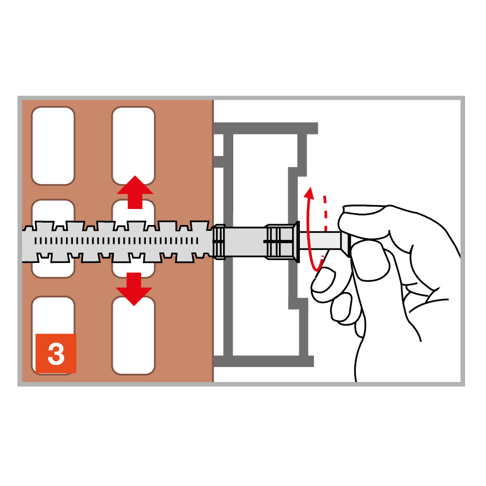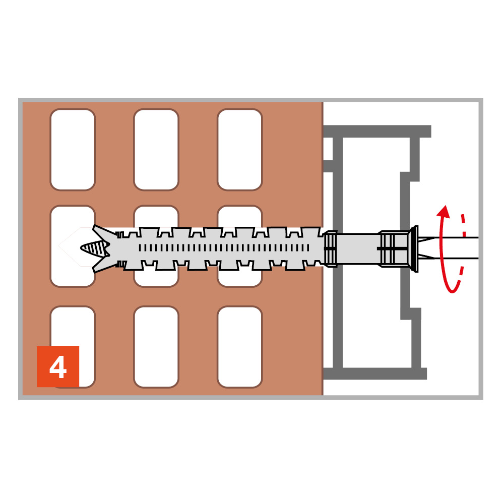 El anclaje de nailon largo FM-X5 es perfecto para fijar elementos a cualquier tipo de soporte hueco o macizo, que necesite un ajuste manual durante el montaje, como marcos de puertas o ventanas.