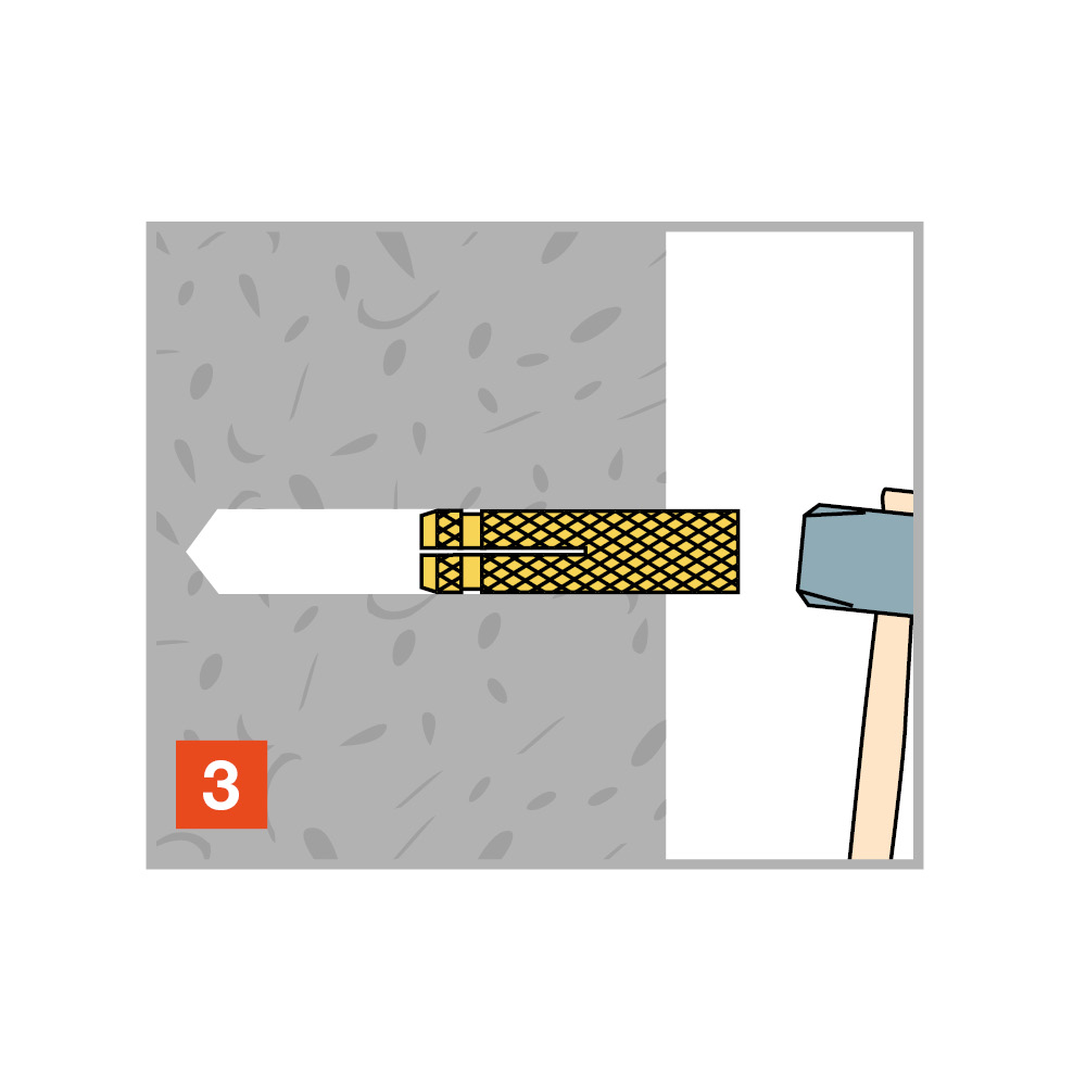 El anclaje de latón con moleteado TO es una solución flexible para la fijación de elementos ligeros a soportes macizos o a madera. Se puede insertar un tornillo de rosca métrica o una varilla roscada.