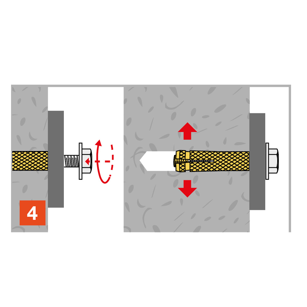 Moleteado en la pared exterior para aumentar la adherencia del material de soporte y evitar la rotación del anclaje