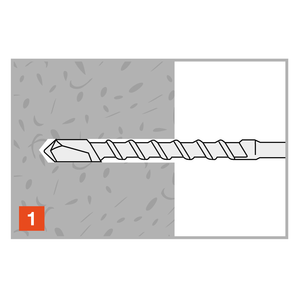| Modelo | Product Reference | Plug [Ø x L] | Hex head screw [Ø x L] | Espesor máx. [tfix] piezas a fijar [mm] | Ø agujero [do] [mm] | Profundidad mínima de perforación [h1] [mm] | Profundidad de anclaje nominal [hnom] [mm] | Profundidad de anclaje mínima [hef]. [mm] | Ø agujero pieza a fijar [df] [mm] | Espesor mín. [tmini] piezas a fijar [mm] | Longitud de rosca [Lv] [mm] | Par de montaje [Nm] | Ctd por caja | Ctd por embalaje |
