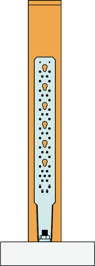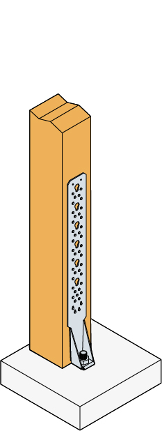 Este anclaje permite aplicar esfuerzos de tracción en distintas configuraciones: unión de pilares, vigas o pie de cerchas. Los agujeros para puntas permiten adaptar la fijación en función de la configuración de uso. Pueden utilizarse tanto en construcciones nuevas como para trabajos de rehabilitación (refuerzo de estructuras existentes).