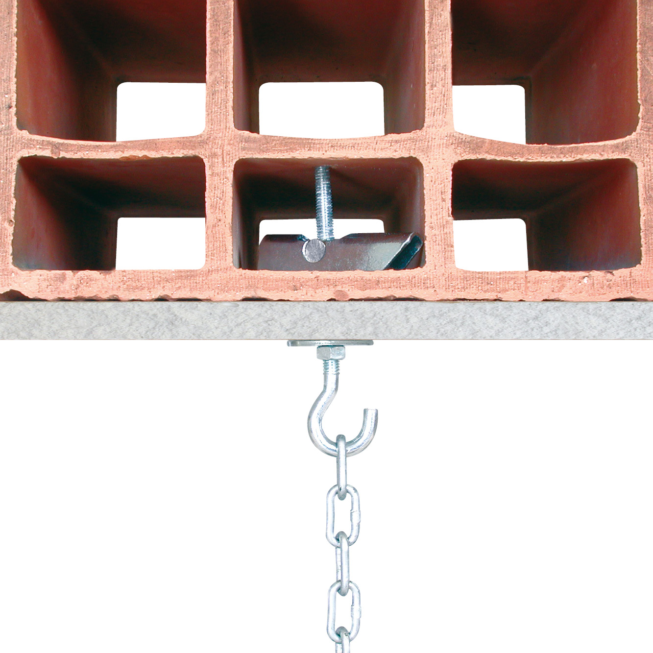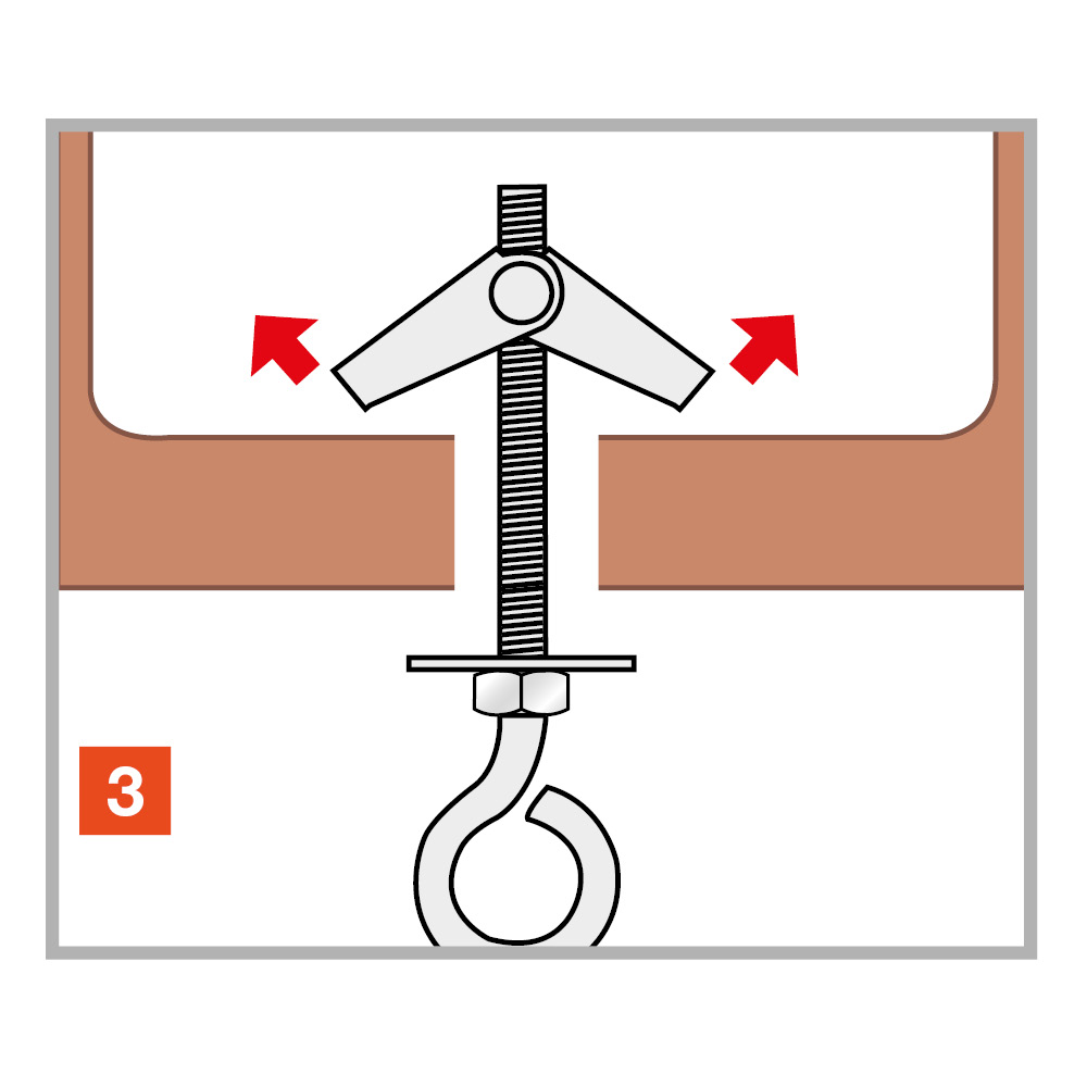 El anclaje de resorte se coloca automáticamente en el soporte hueco, por expansión de las alas, gracias a un resorte. Disponible con varios accesorios.