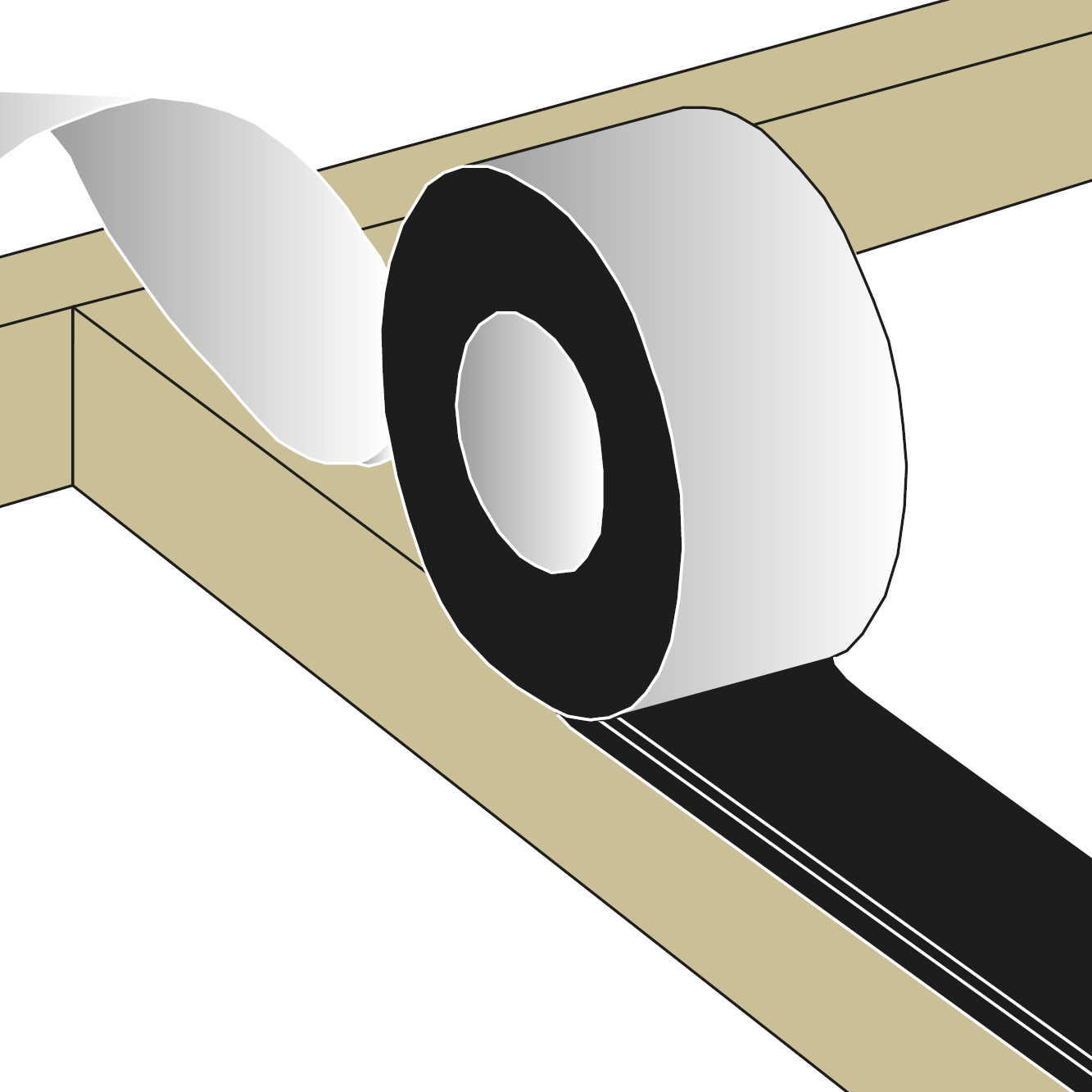 La cinta debe aplicarse en la parte superior de la vigueta, después de retirar la cinta protectora, y antes de colocar y fijar las tablas de la terraza, aplicando una ligera presión con un objeto liso o a mano utilizando un guante.