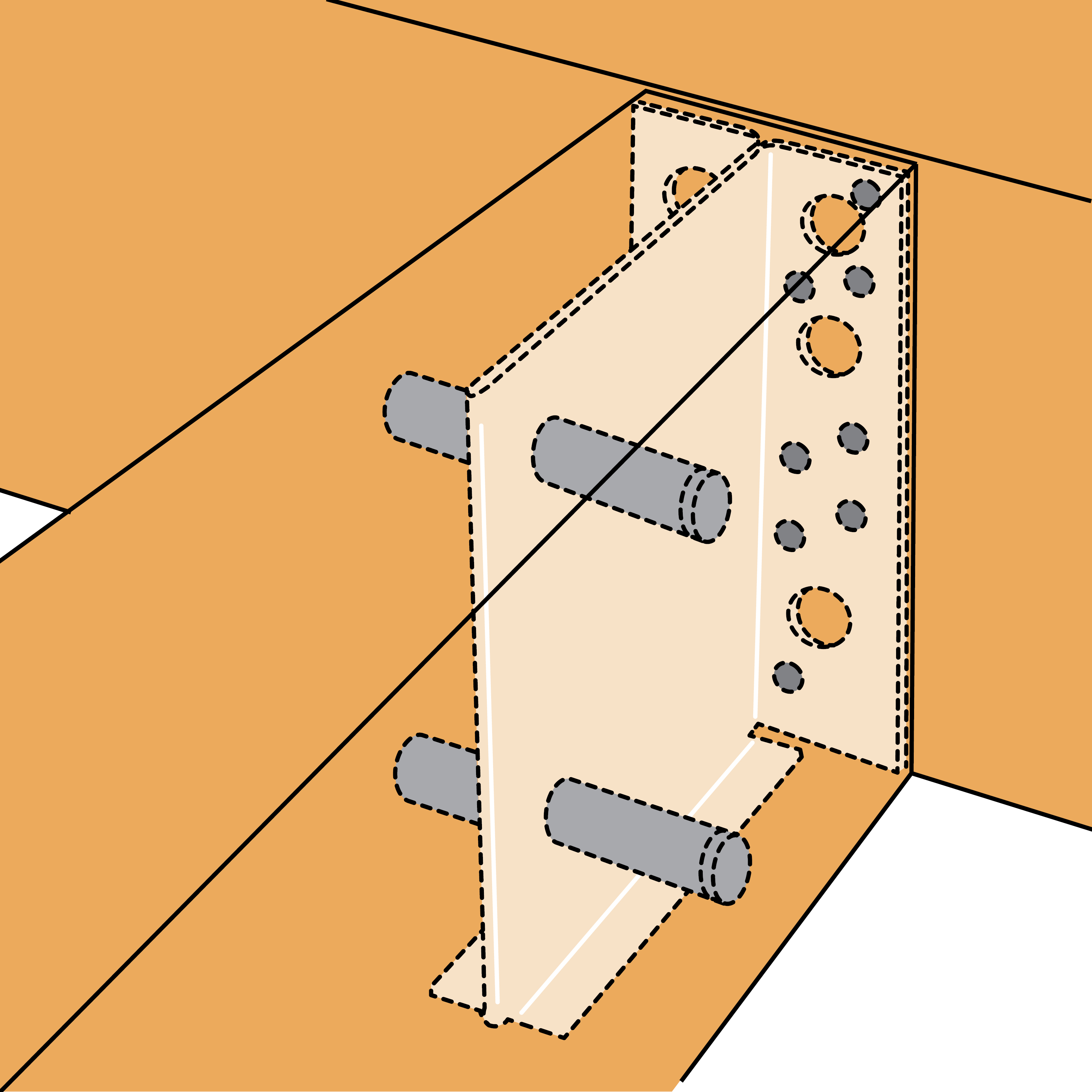 Las clavijas intervienen a la hora de aplicar cargas a nuestros conectores. Deben respetarse las recomendaciones de instalación especificadas en nuestros DITE : DITE-07/0245 (Estribos con alma interior) y DITE -07/0285 (Pies de pilares).