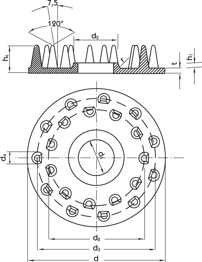 Dimensiones - Forma redonda, dentado simple C11