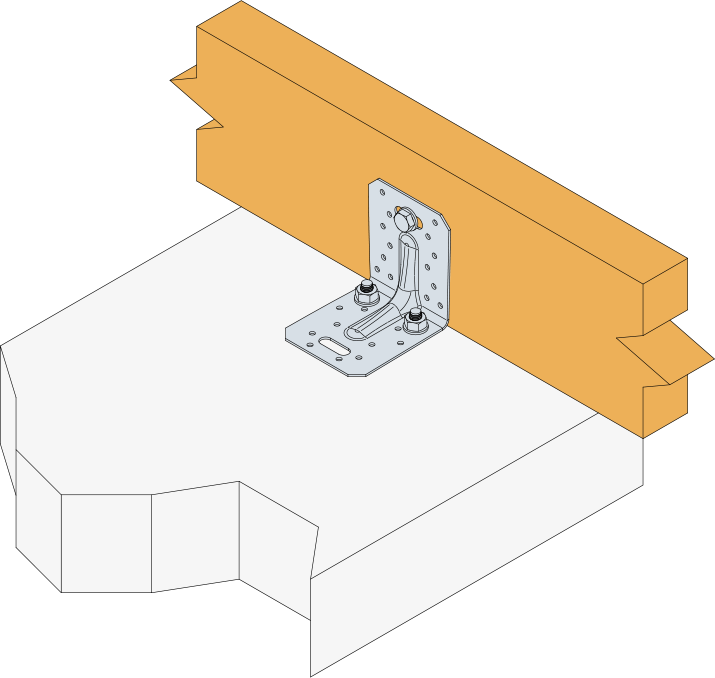 * Véase las columnas en la tabla de valores característicos para averiguar qué tipos de fijaciones pueden usarse en el ala A. Los valores varían según el tipo de fijación usado. El nivel de resistencia de diseño del perno R#,d se determina mediante (coeficiente del perno x carga diseño del conector F#,d) para la dirección del esfuerzo y las correspondientes fijaciones. Consulte la gama de anclajes Simpson Strong-Tie para los anclajes adecuados. Las soluciones típicas dependen del tipo de hormigón, el espacio y las distancias a los bordes.