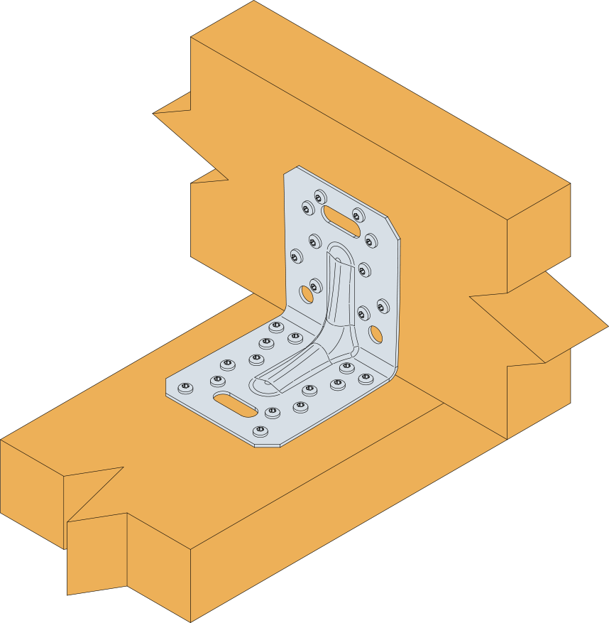 La escuadra reforzada ACRL10520 está diseñada para aplicaciones en estructuras y viviendas con armazón de madera. La presencia de los agujeros oblongos sobre cada ala permite un reglaje lateral.