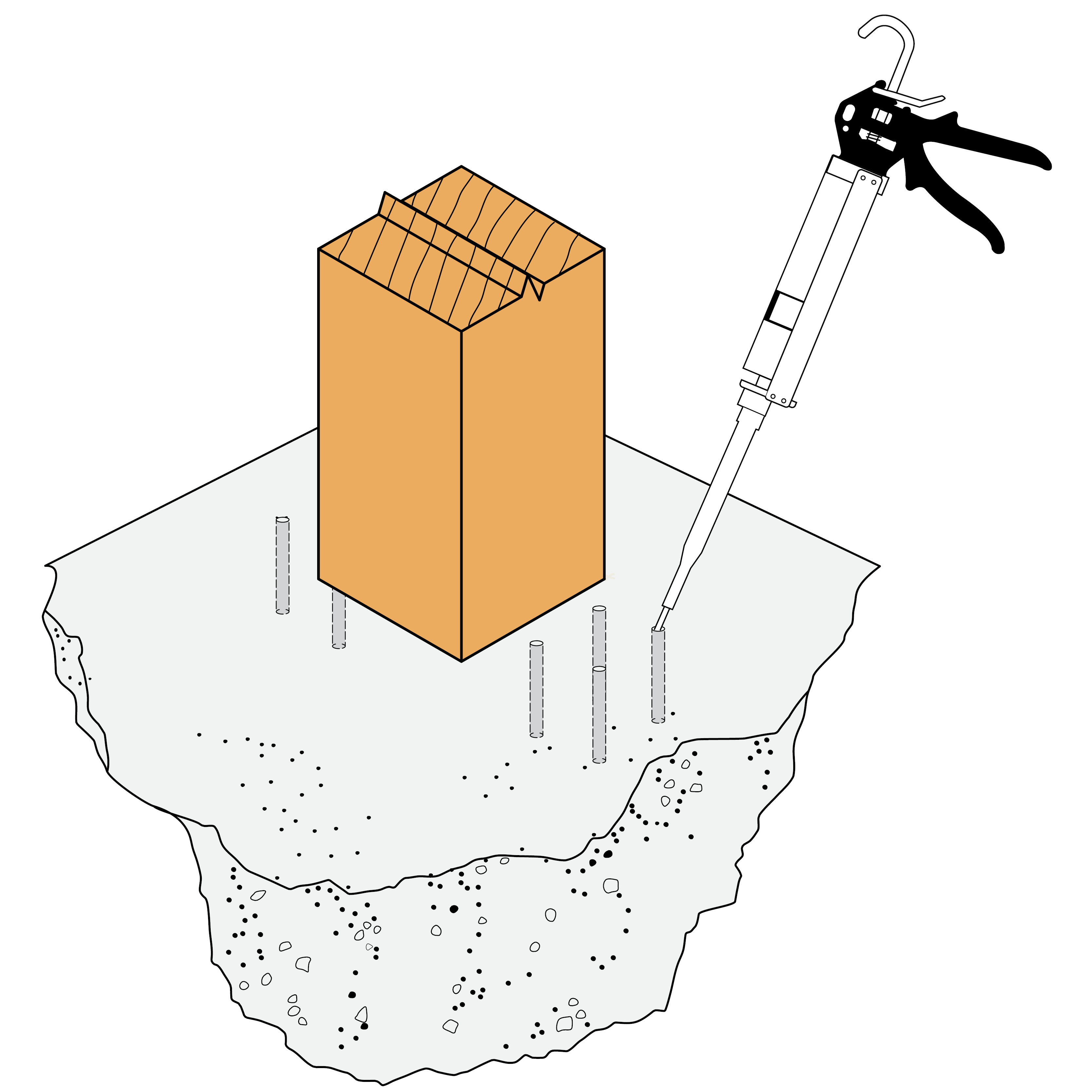 - Anclaje químico : resina AT-HP o POLY-GP + varilla roscada LMAS M12-150/35 + tamiz SH M16-130.
