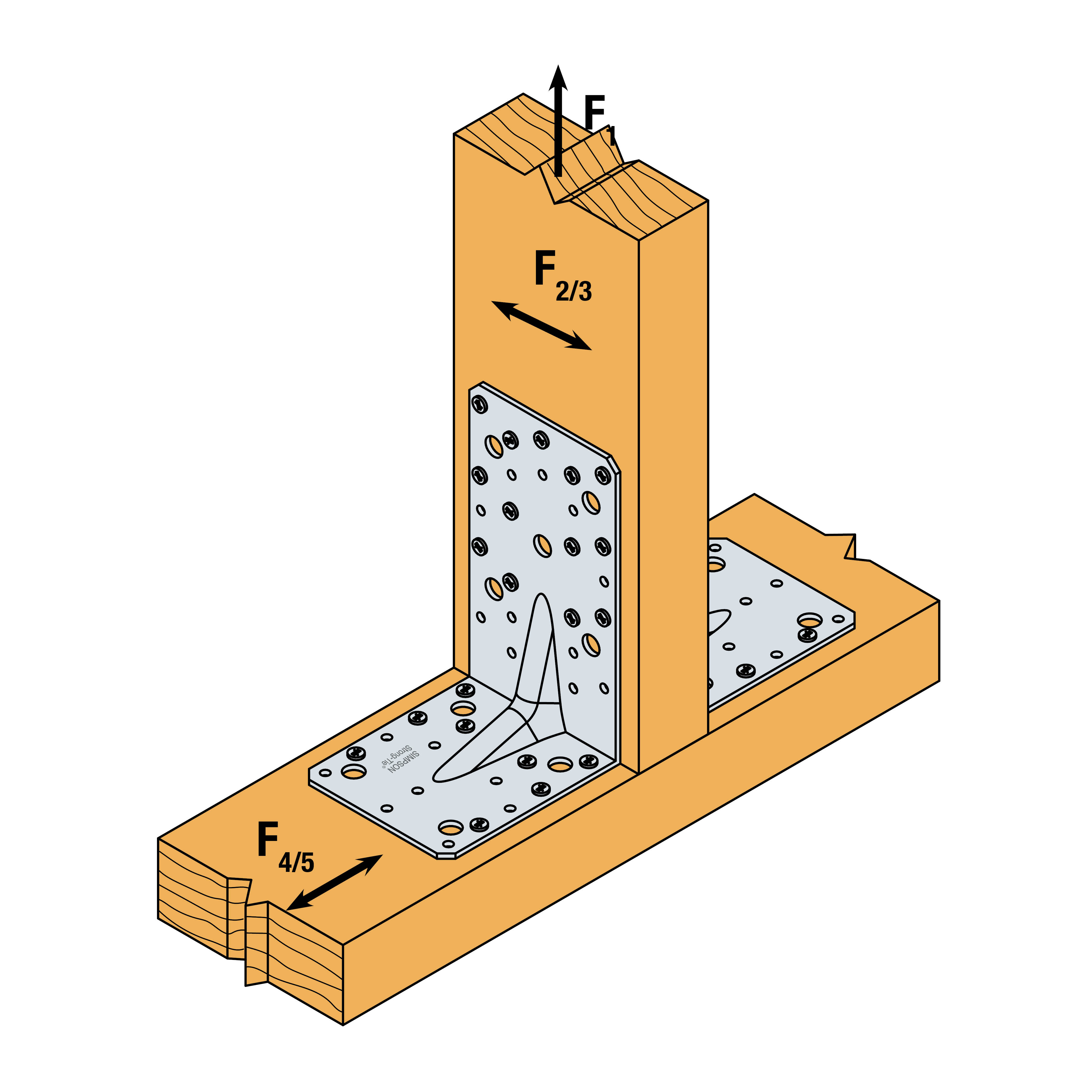 En este ficha técnica únicamente se indican los valores de los esfuerzos F1, F2 y F3 para uniones con dos escuadras.