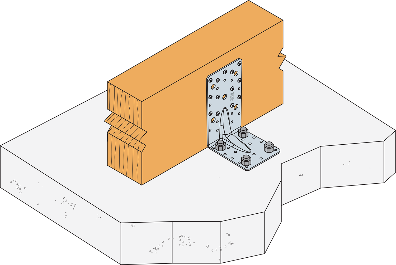 ** El nivel de resistencia de diseño del perno R#,d se determina mediante (coeficiente del perno x carga diseño del conector F#,d) para la dirección del esfuerzo y las correspondientes fijaciones. Consulte la gama de anclajes Simpson Strong-Tie para los anclajes adecuados. Las soluciones típicas dependen del tipo de hormigón, el espacio y las distancias a los bordes.