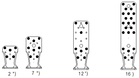 * Consultar las columnas de la tabla para determinar la resistencia característicass según la longitud de la fijación utilizada en el ala A.