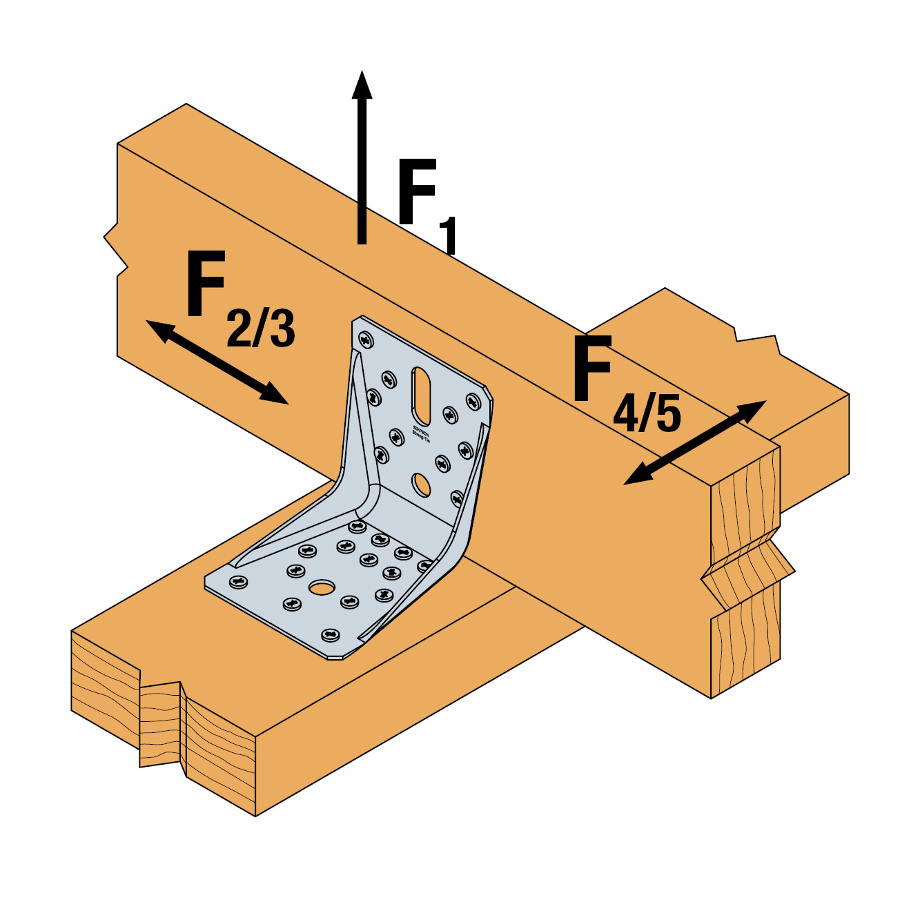 Para obtener los valores de resistencia para una escuadra, los valores de la tabla más arriba se deben dividir por dos, siempre que la viga soportada esté bloqueada en rotación. Consulte nuestro ETE-06/0106 si la viga puede girar libremente.