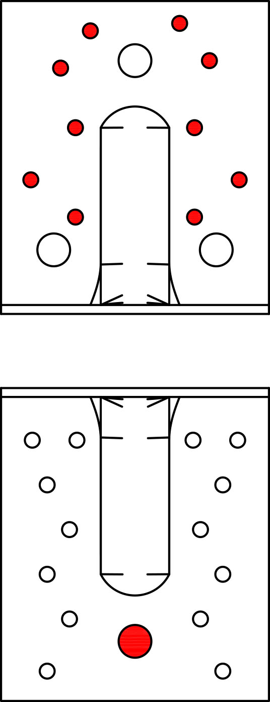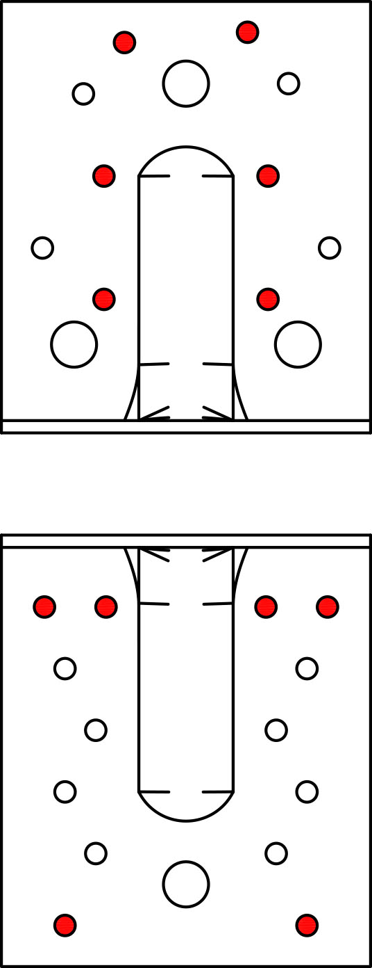 ** El nivel de resistencia de diseño del perno R#,d se determina mediante (coeficiente del perno x carga diseño del conector F#,d) para la dirección del esfuerzo y las correspondientes fijaciones. Consulte la gama de anclajes Simpson Strong-Tie para los anclajes adecuados. Las soluciones típicas dependen del tipo de hormigón, el espacio y las distancias a los bordes.