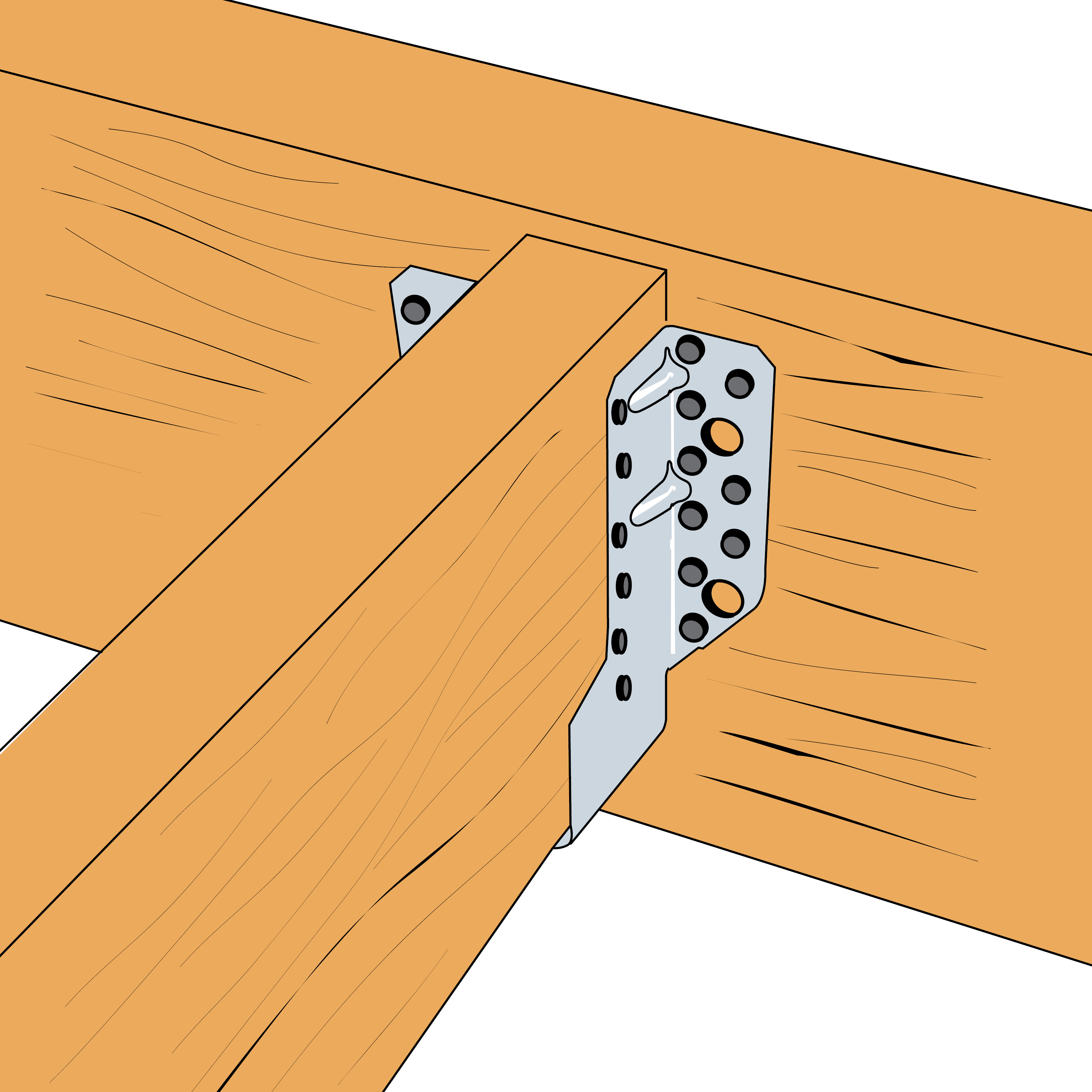 - Oriente la viga secundaria en el estribo y fíjela mediante pernos o tirafondos.