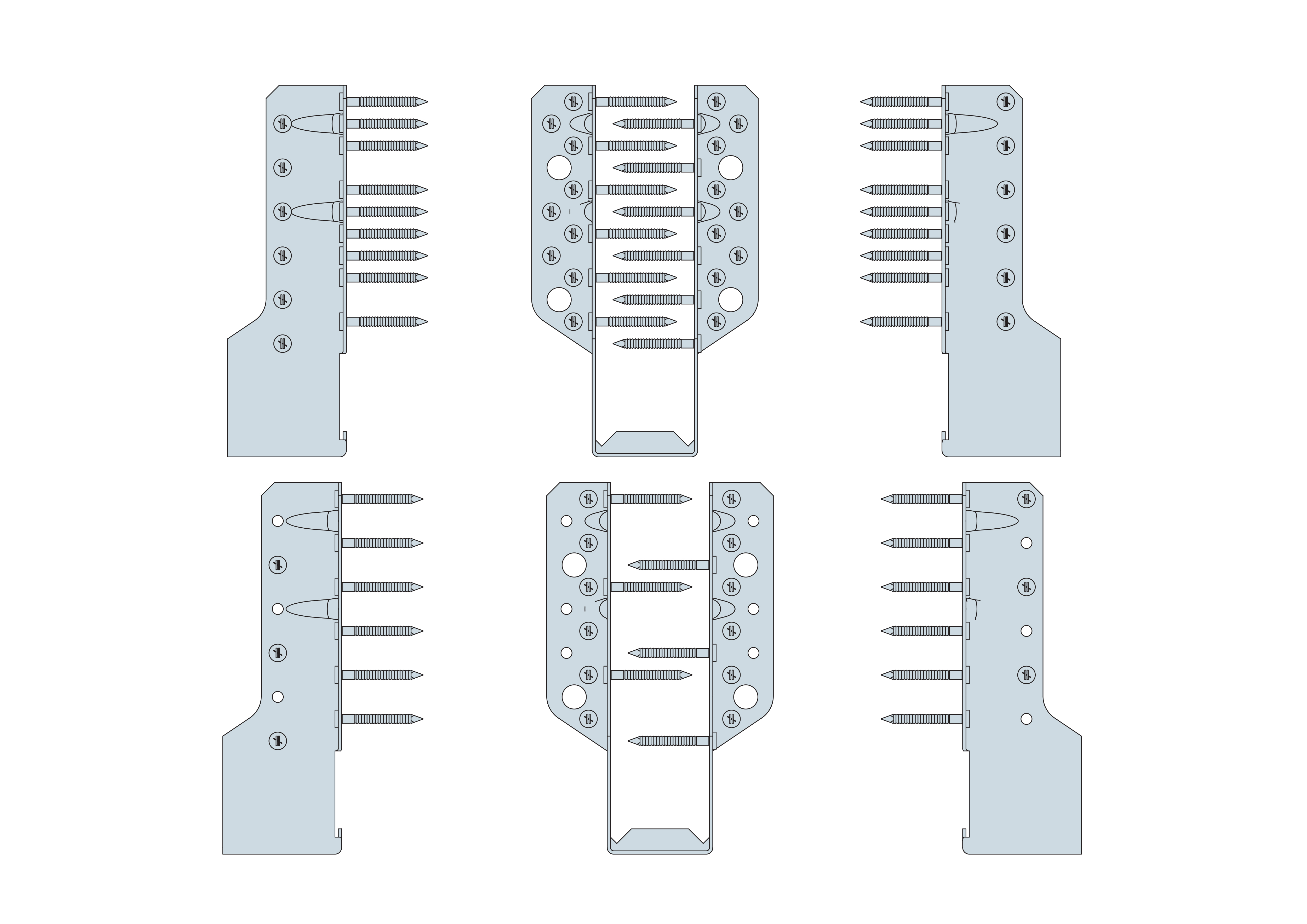 - Tornillos CSA 5.0x35 mm para espesores inferiores a 60 mm.