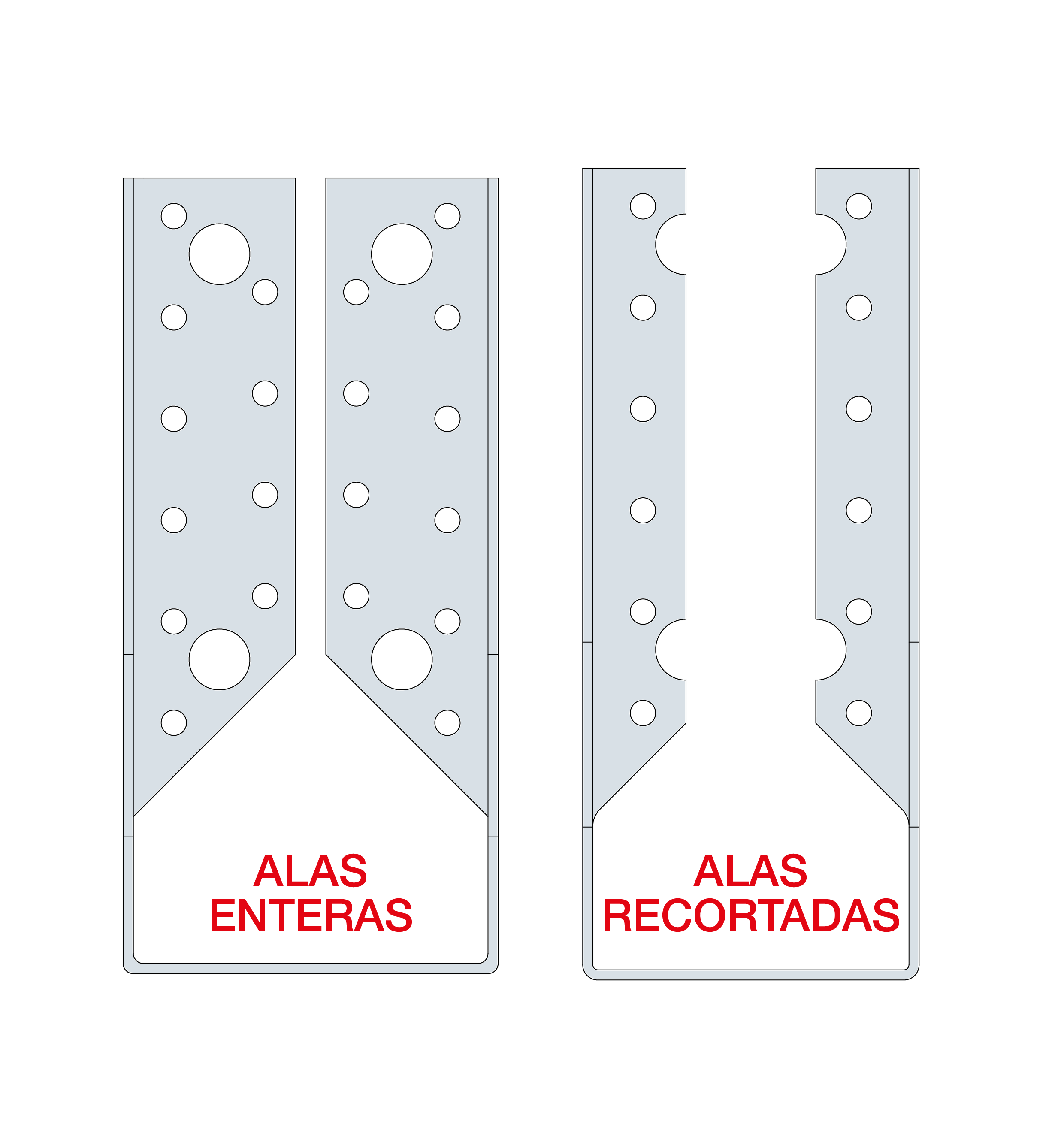 | Modelo | Desarrollo [mm] | Unicamente con agujeros para puntas (Alas recortadas) | Con agujeros para tirafondos y puntas (Alas enteras) |