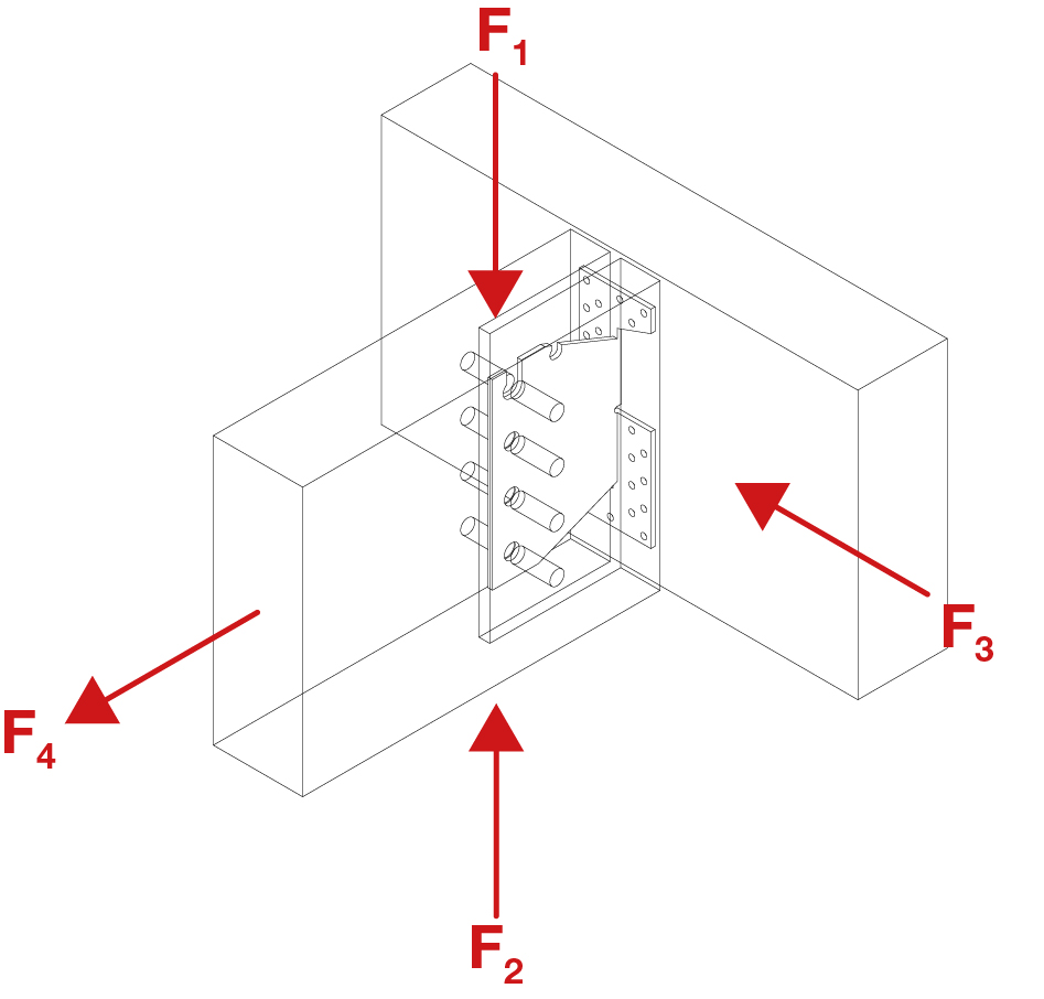 El estribo con alma interior BTC es un conector discreto que permite realizar fijaciones sobre soportes rígidos. El número de clavijas y de anclajes se puede elegir libremente según la carga aplicada. El estribo BTC permite soportar esfuerzos en las 3 direcciones. Por lo tanto, las uniones de vigas derramadas también se pueden realizar con simplicidad y seguridad.