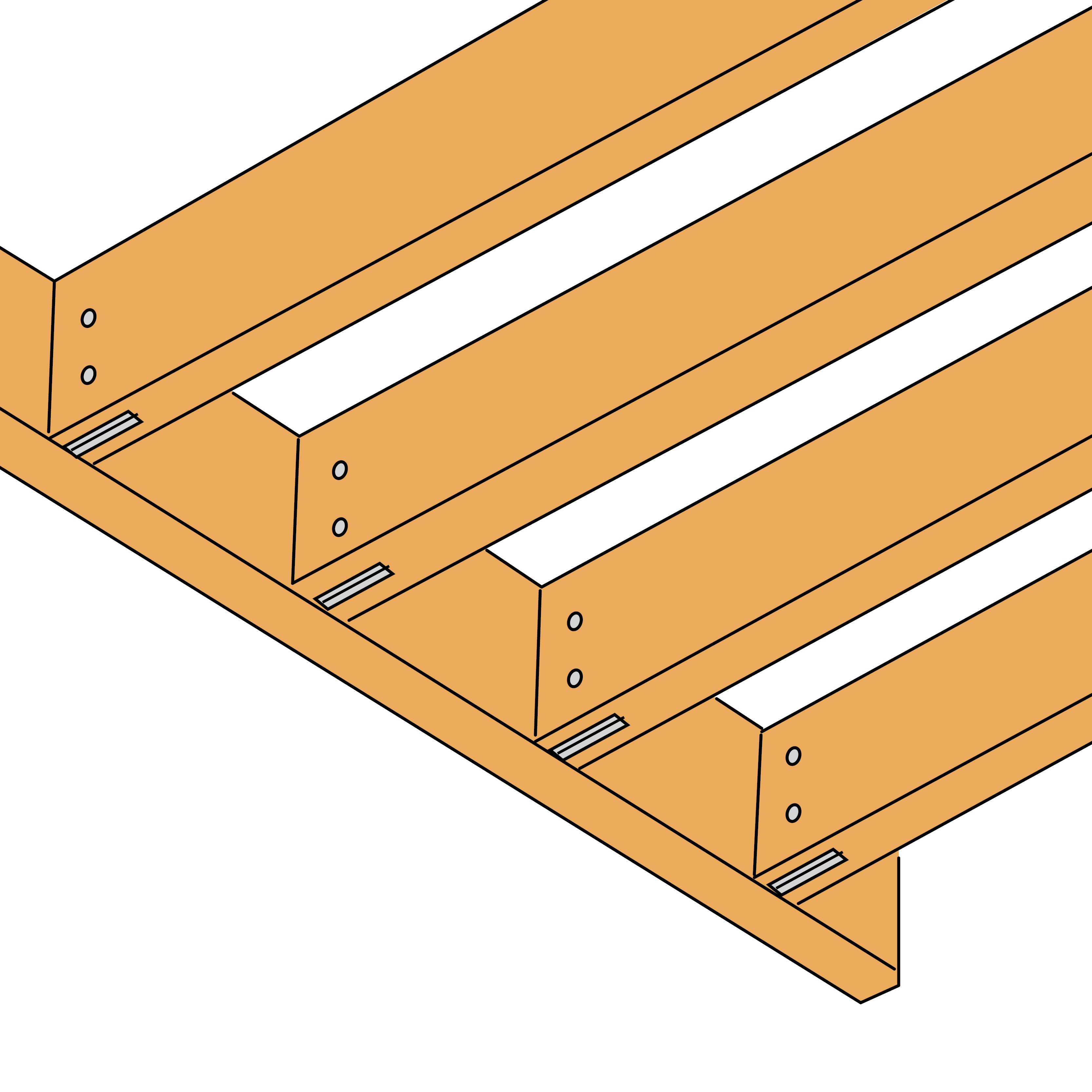 - Perfore transversalmente la viga principal para insertar las clavijas (diámetro de perforación en función del diámetro de la clavija).