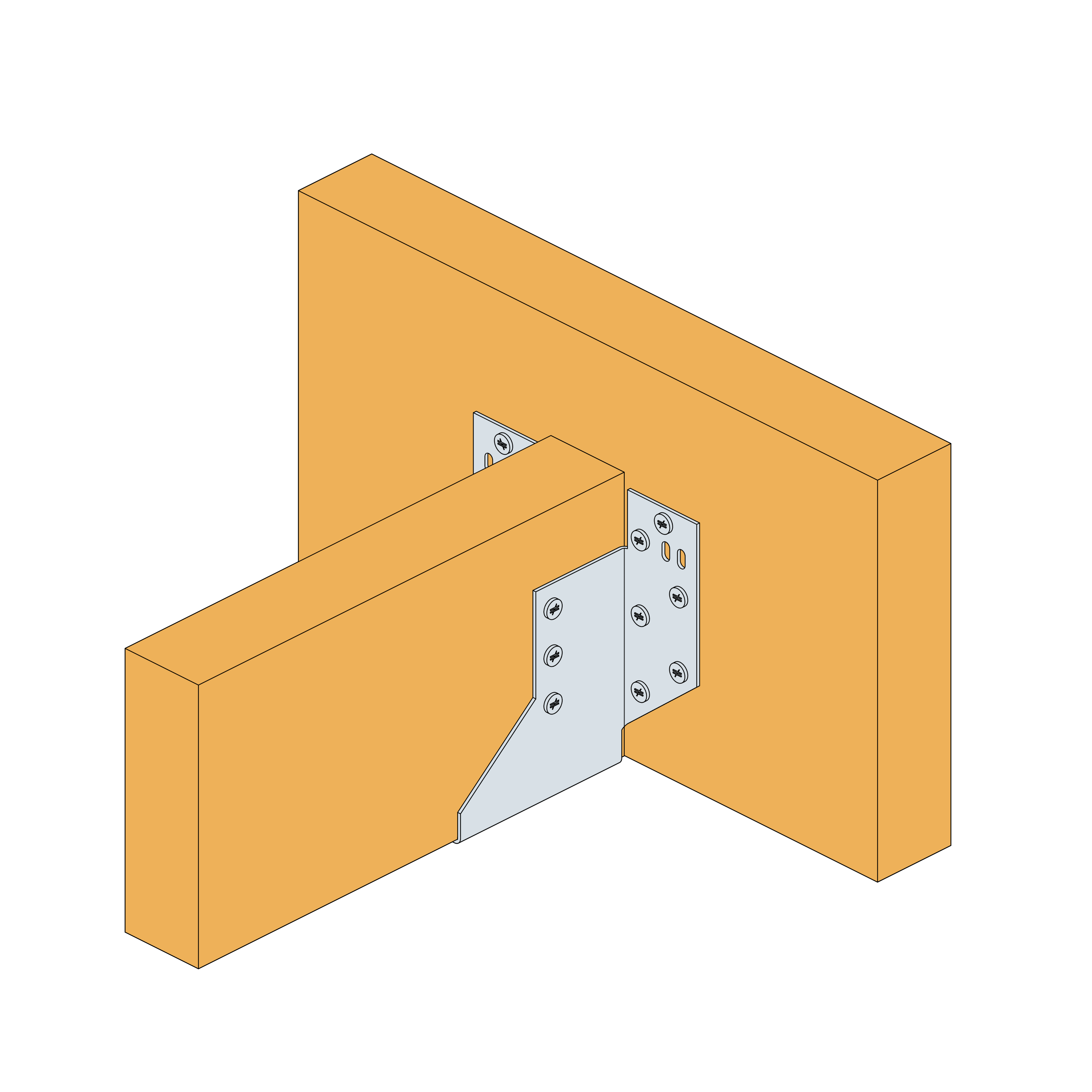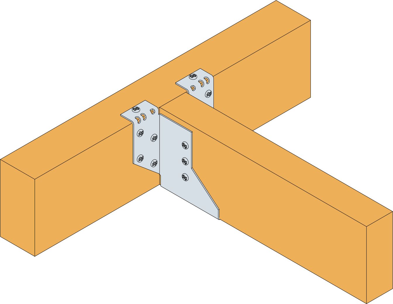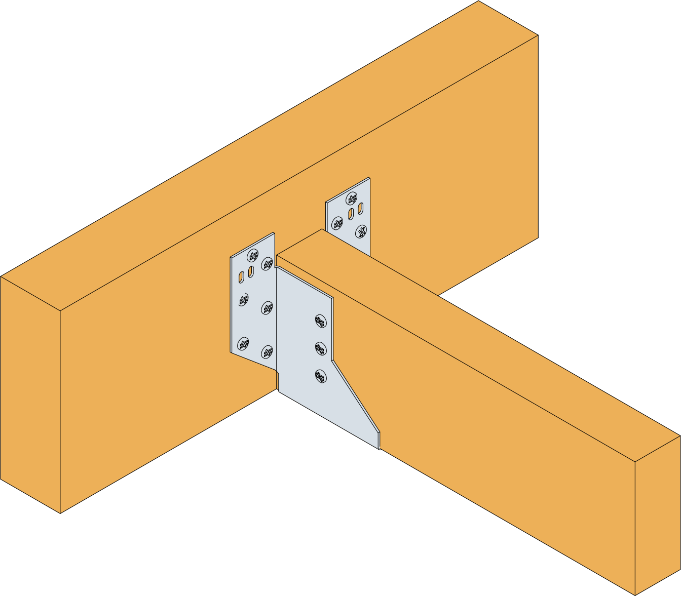 El estribo SHT es un estribo con tirantes que se utiliza para conectar cerchas con soportes de madera. Puede ajustarse en altura en la obra porque puede instalarse con las alas planas en el elemento principal o con las alas plegadas.
