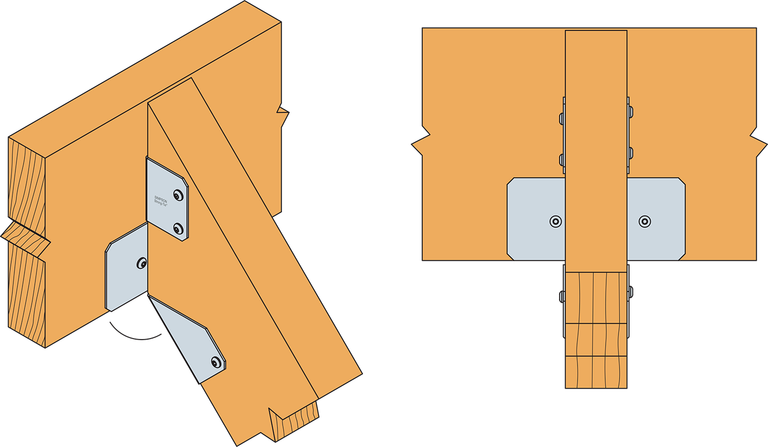 Los estribos SPR permiten fijar cabrios sobre elementos de soporte de madera y hormigón. La regulación de la inclinación se realiza en la propia obra, pudiendo utilizarse ángulo de hasta 45° hacia ambos lados con respecto a la vertical. Dicha regulación solo debe realizarse una vez en el sentido deseado.