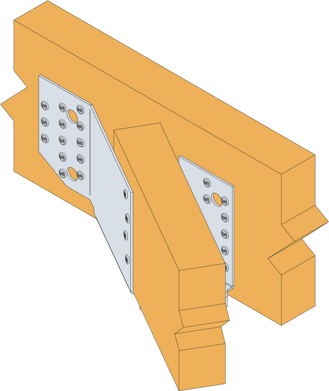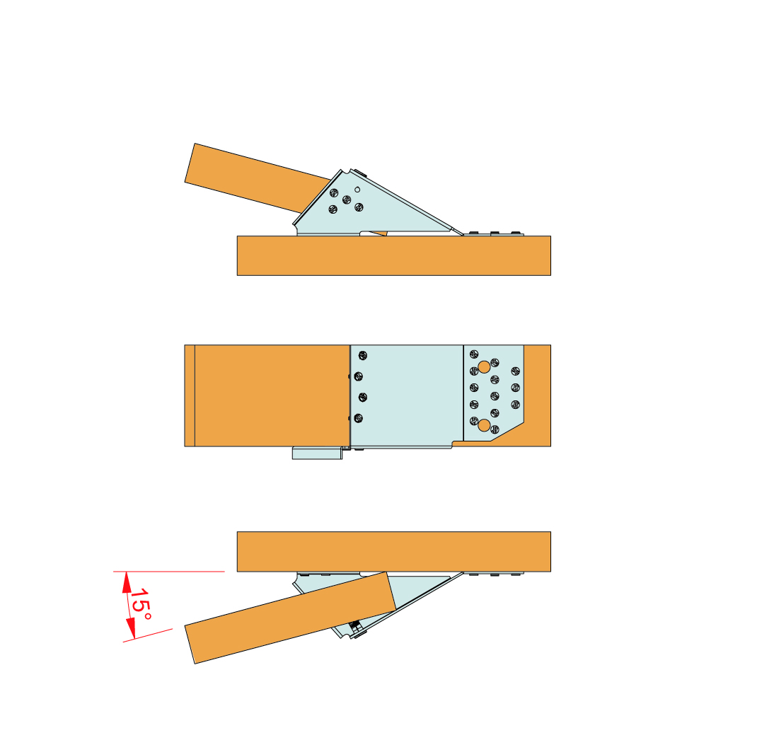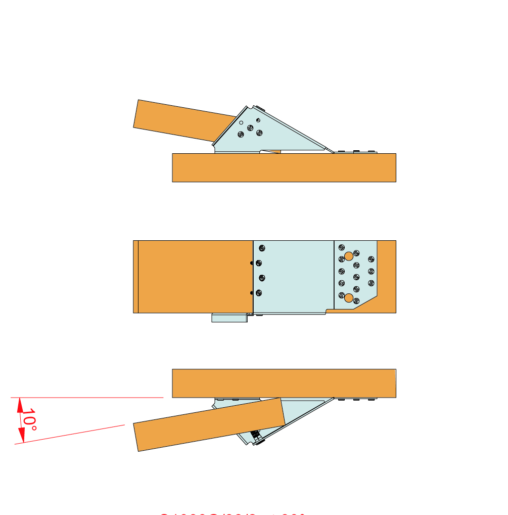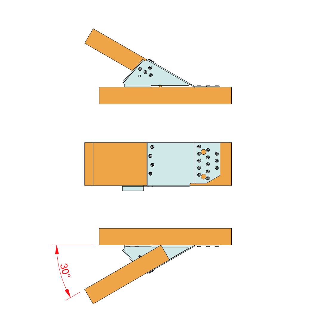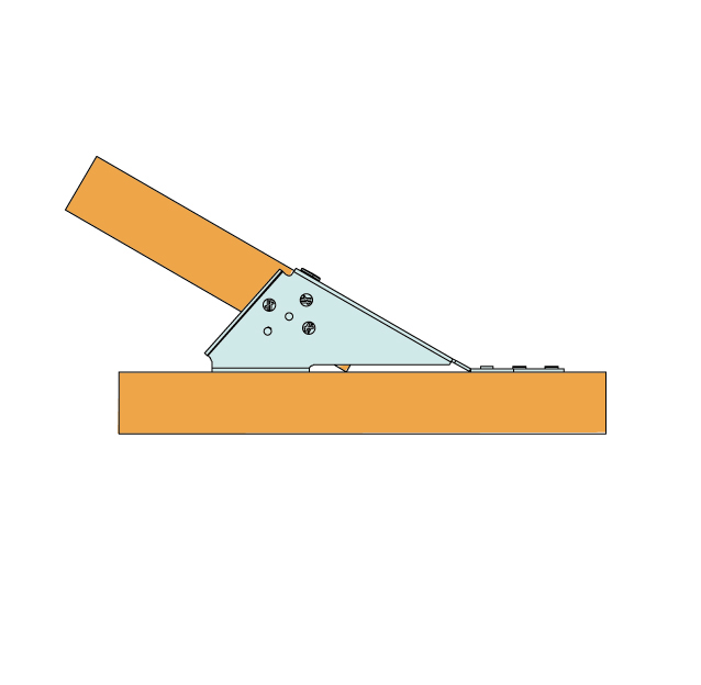 El estribo en ángulo variable para madera de cercha ha sido diseñado para las uniones comprendidas entre 10º y 30º o 15º y 30º. Existe un modelo para cerchas (38 mm) y otro para las cerchas dobles (80 mm).