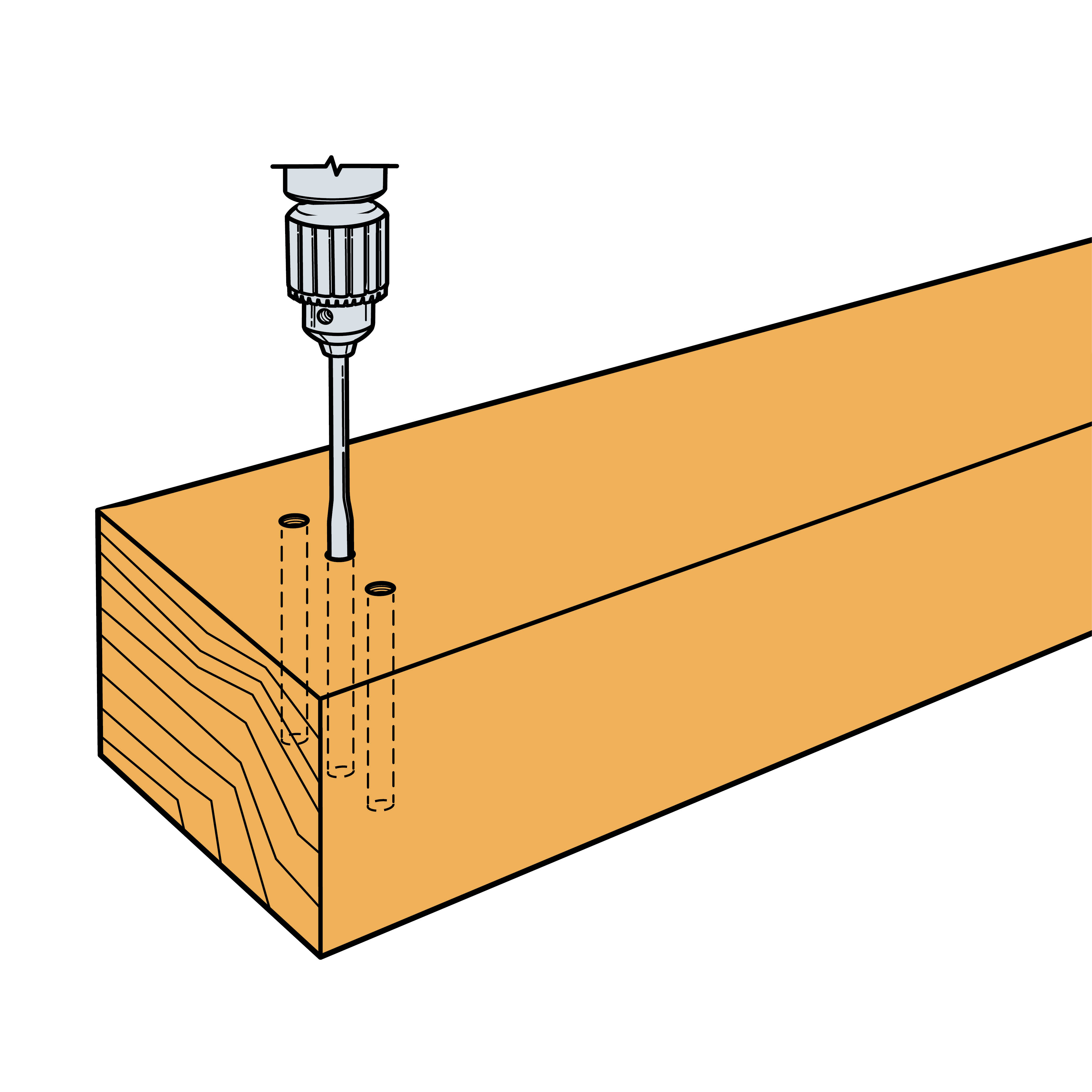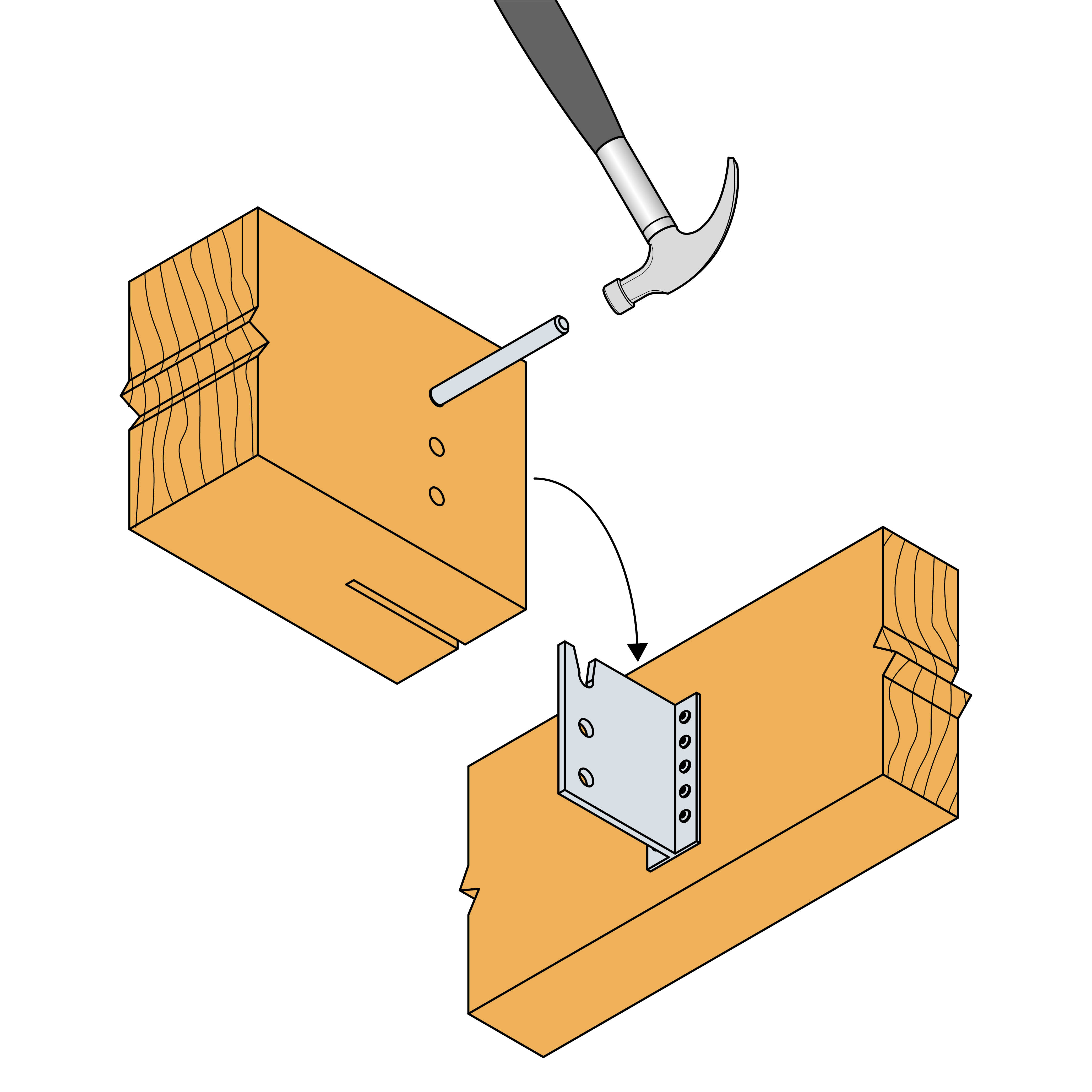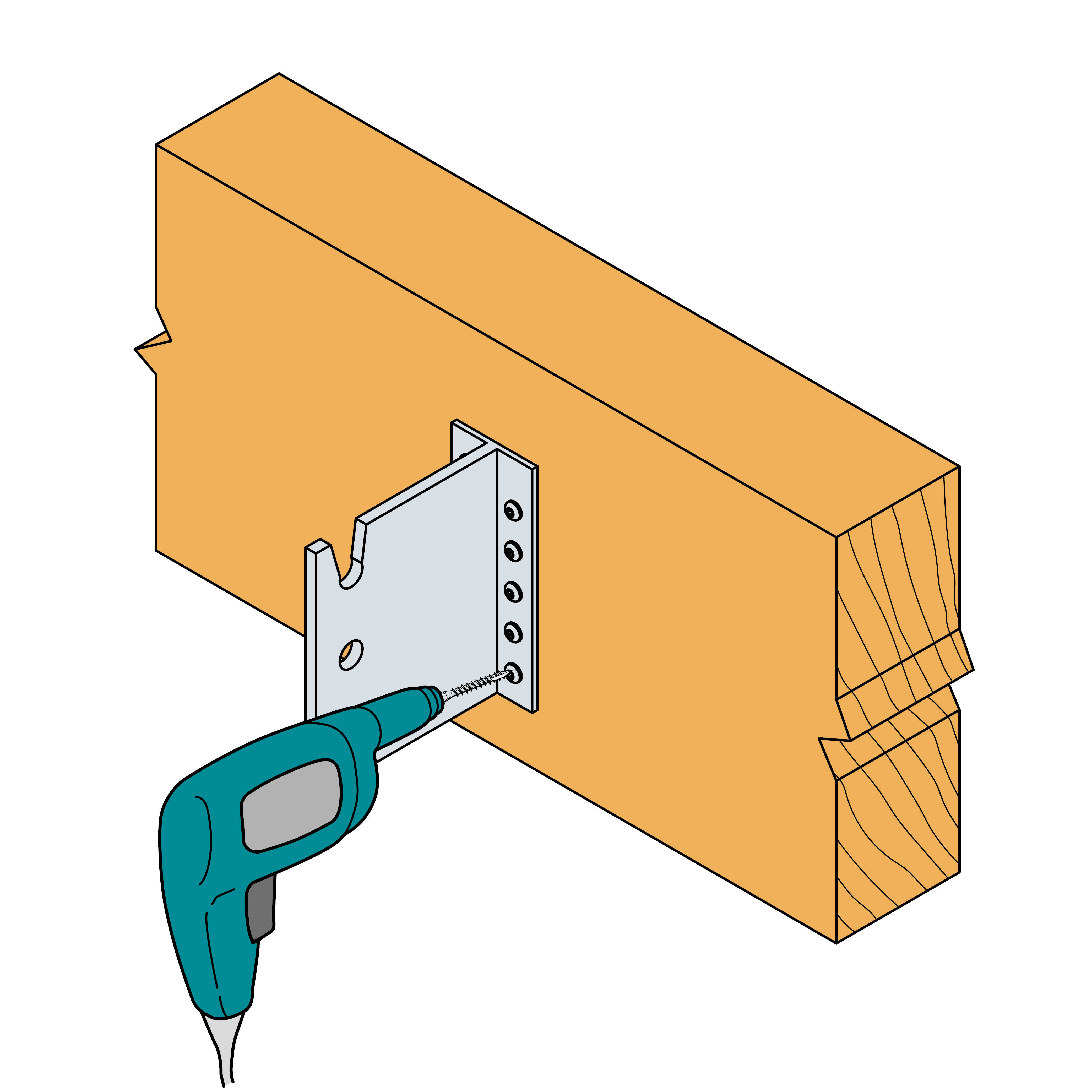 - Los estribos con alma interior BT4 son particularmente adecuados para uniones madera-madera para los que se orientan verticalmente las fibras de madera. Por lo tanto, el conector debe fijarse escalonado.