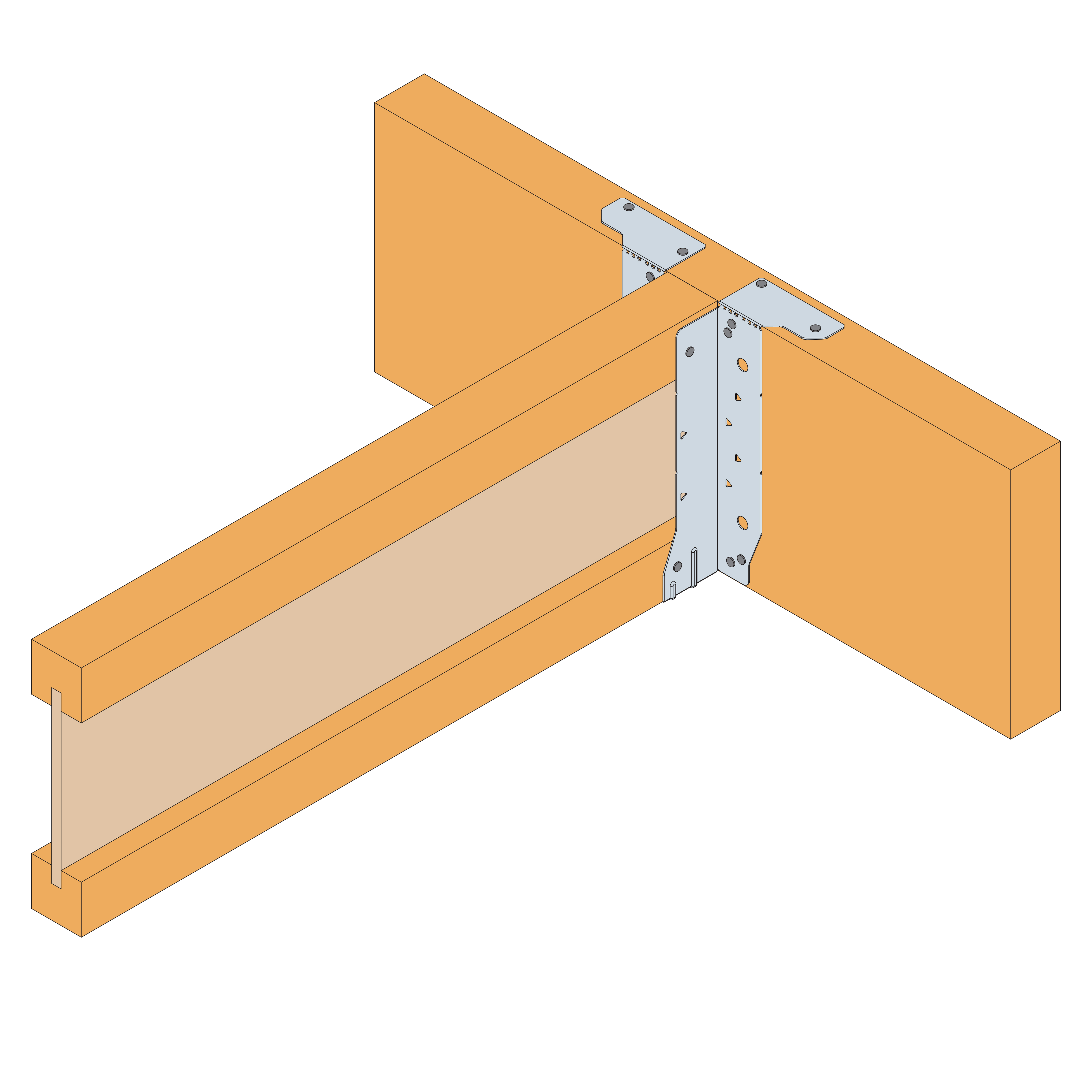 5. Para la instalación en la parte superior del soporte principal, doble las bridas superiores a lo largo del borde del soporte y rellene todos los orificios superiores con la fijación especificada (NOTA: dependiendo de la altura de la viga secundaria, la flexión de las bridas superiores puede estar desplazada hacia arriba 6 mm por encima de la línea prevista en el estribo).