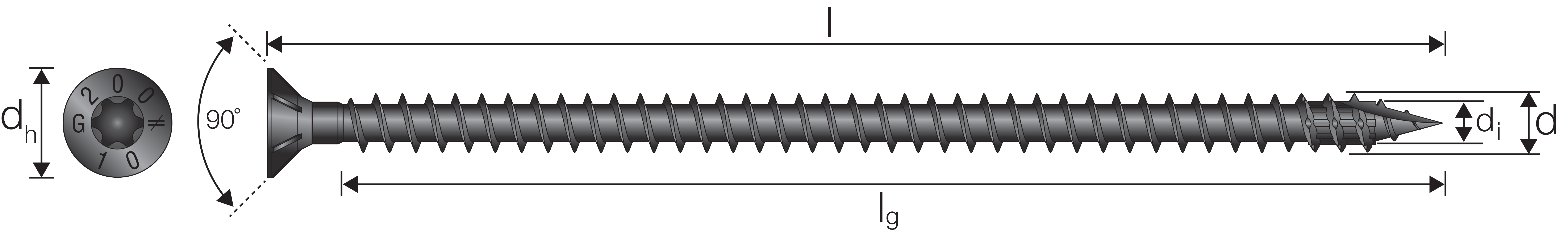 • Countersunk head: ideal for timber/timber or steel/timber assembly with head flush with surface
