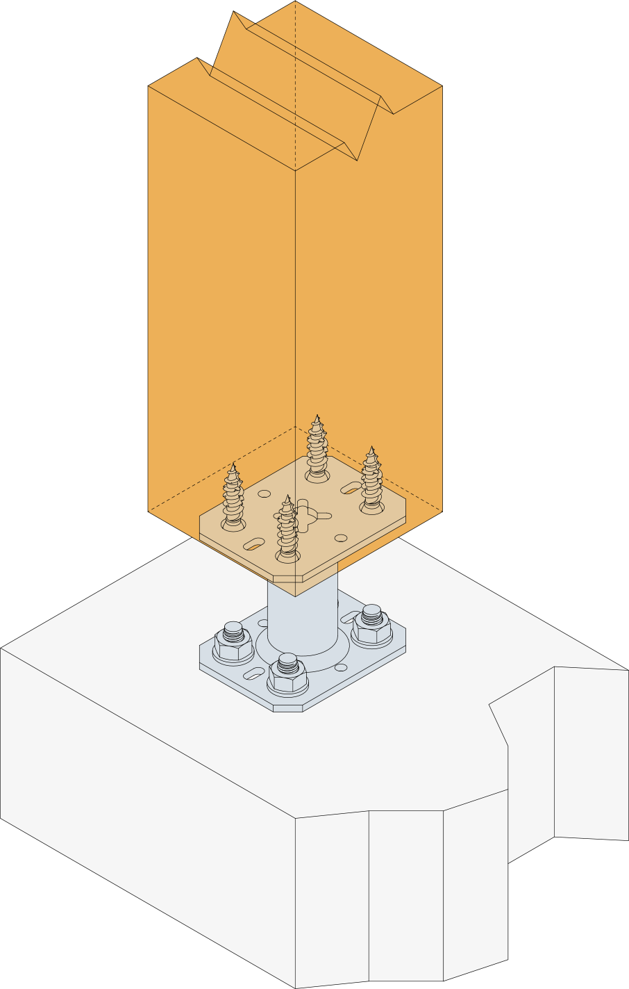 - Fije esta pletina al pilar con la ayuda de tirafondos LAG o SSH (es necesario una perforación previa).