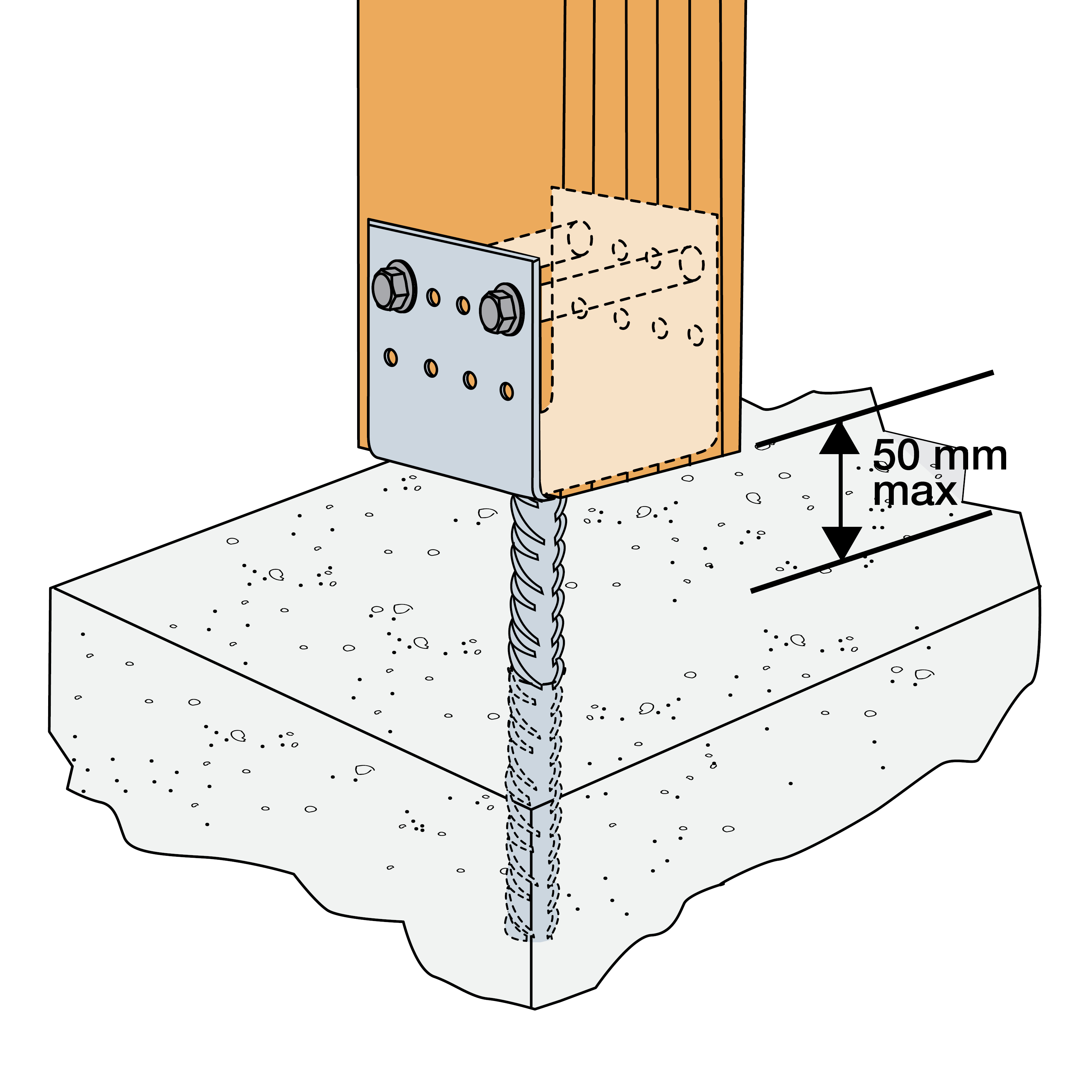 La distancia entre la pletina y el hormigón debe ser como máximo de 50 mm.