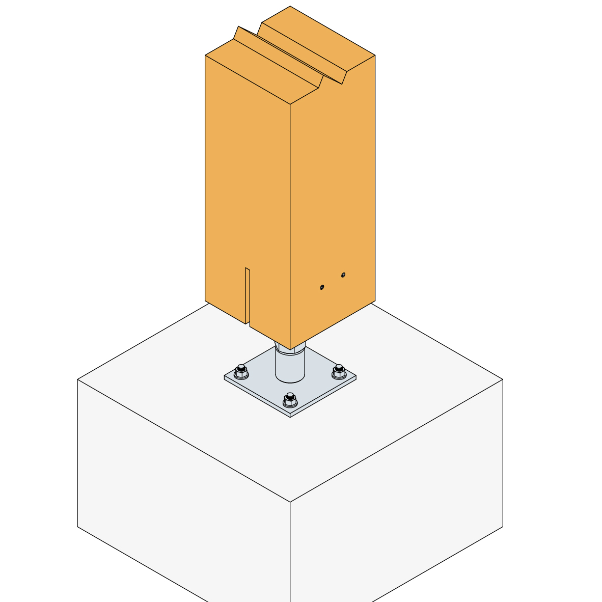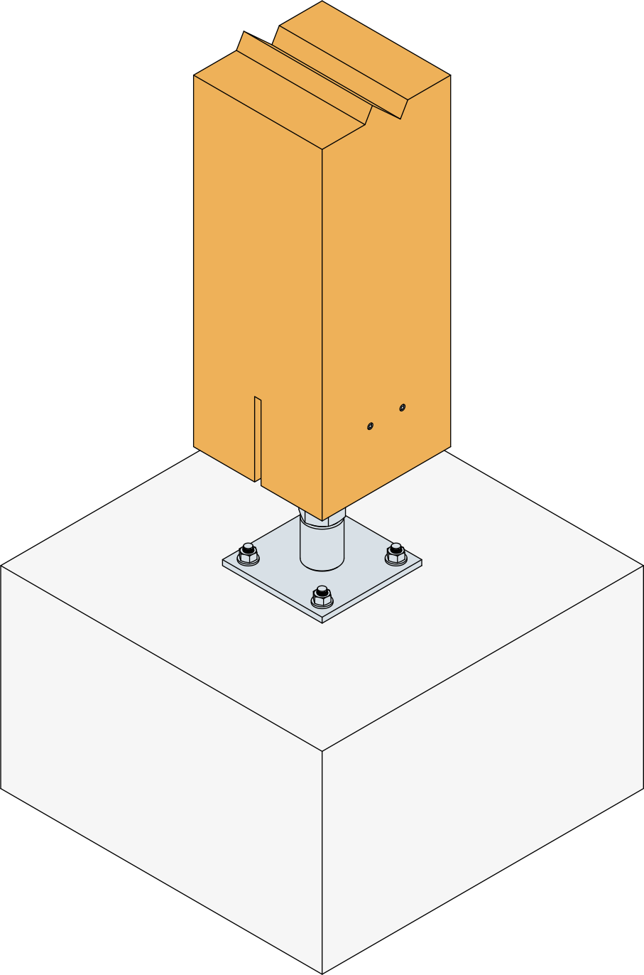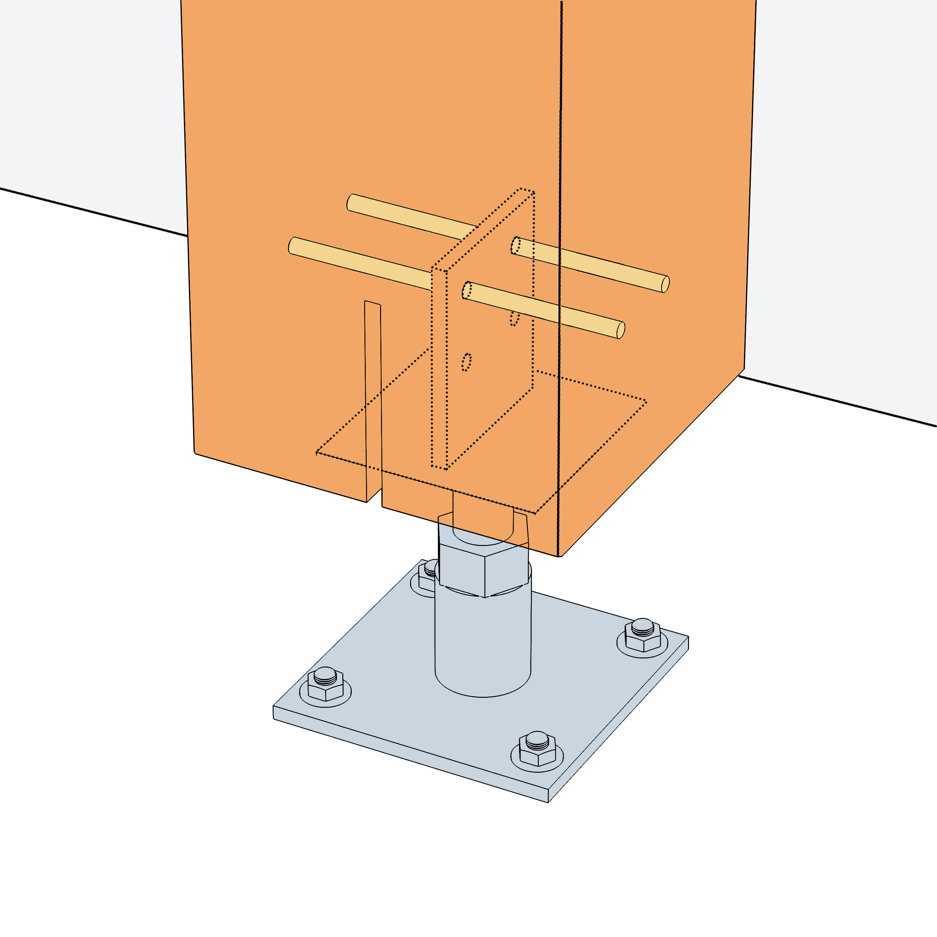 El pie de pilar PIBA110/160 puede soportar hasta 7 toneladas en valor diseño de compresión y también levantamiento gracias a su pletina vertical.