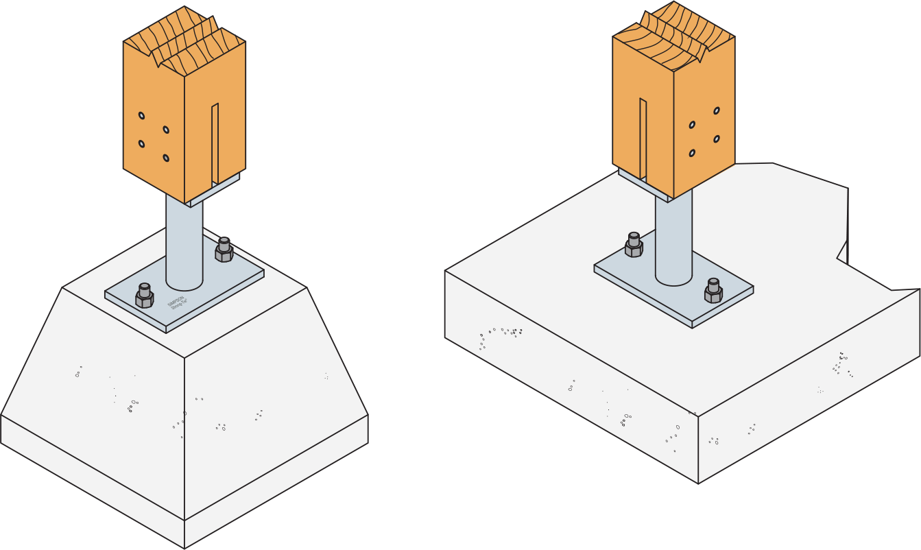 * Consulte la gama de anclajes Simpson Strong-Tie para seleccionar los anclajes adecuados. Las soluciones estándares de anclajes dependen del tipo de hormigón, las distancias entre dos anclajes y las distancias a los bordes.