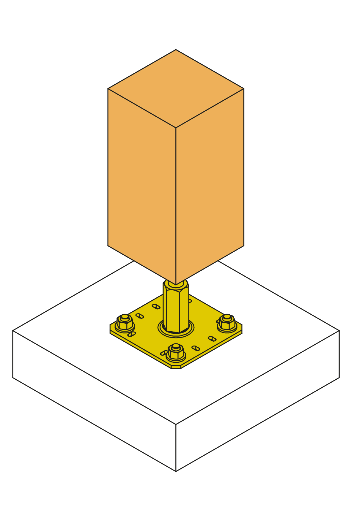 - Fije esta pletina al pilar con la ayuda de tirafondos LAG o SSH (es necesario una perforación previa).