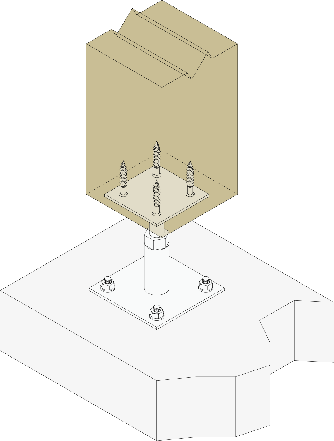 - Fije esta pletina al pilar con la ayuda de tirafondos LAG (es necesario una perforación previa).