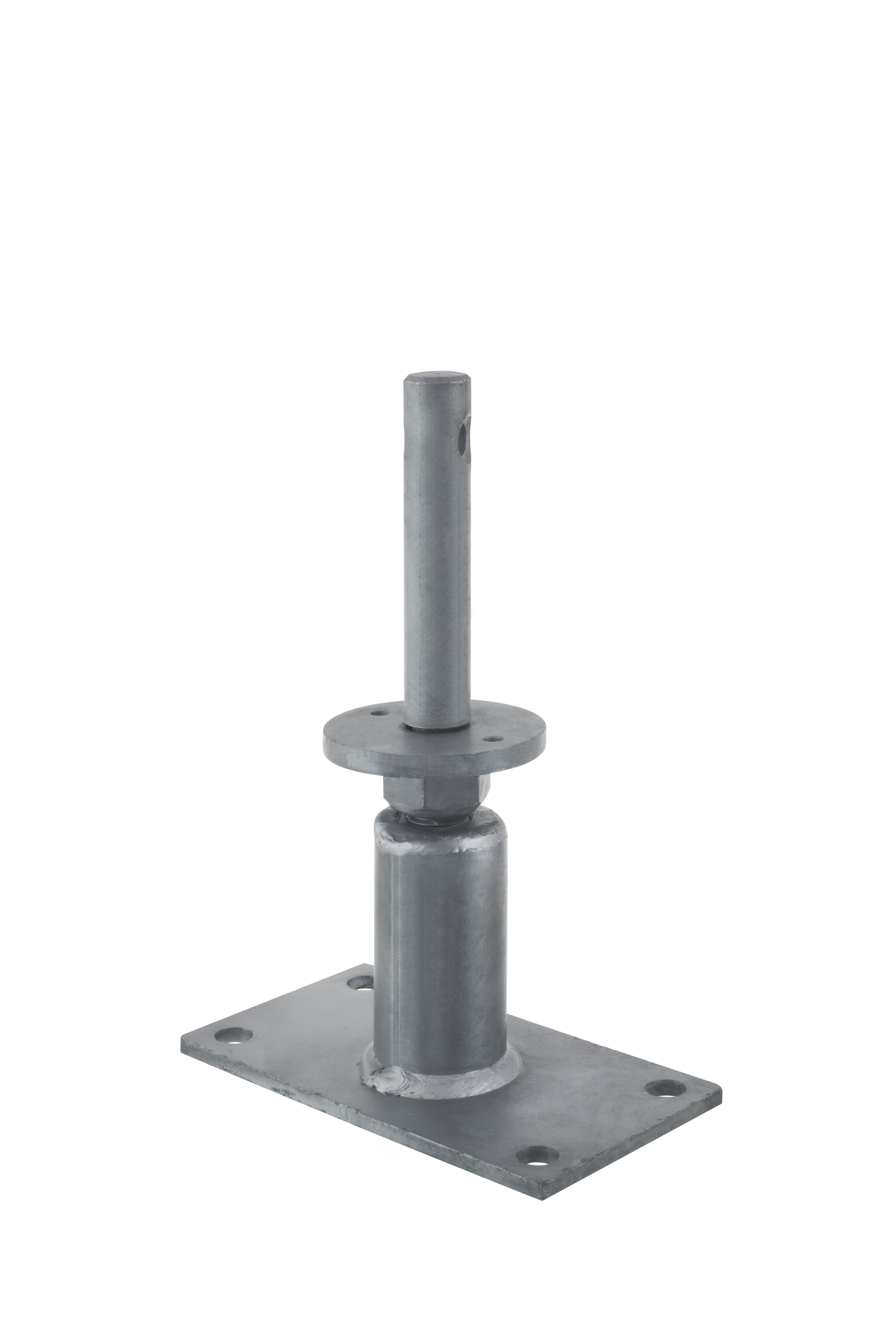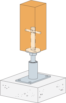 El pie de pilar PGS fue diseñado para soportar cargas verticales y horizontales. Puede soportar hasta cargas elevadas de compresión. Su capacidad de ajuste permite arreglar la altura del poste de madera de 130 a 195 mm del suelo. Por último, la conexión con el poste se realiza mediante un tubo de Ø24 mm que encaja en el poste para un resultado discreto.