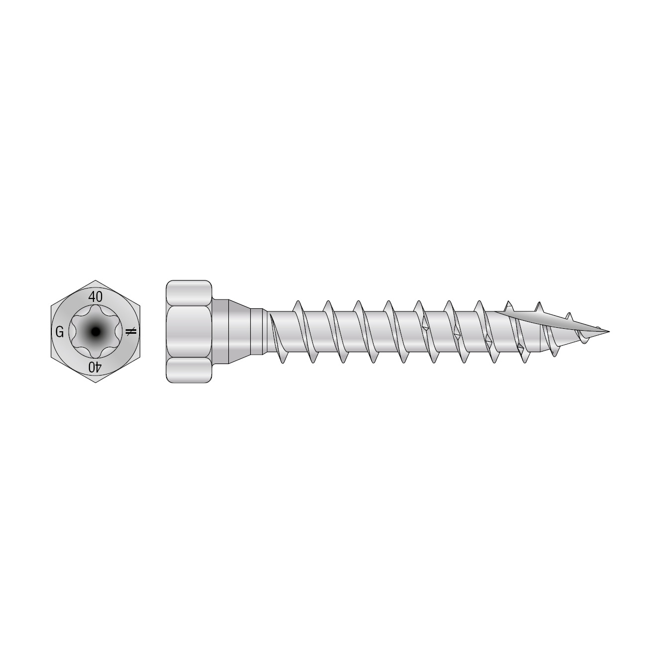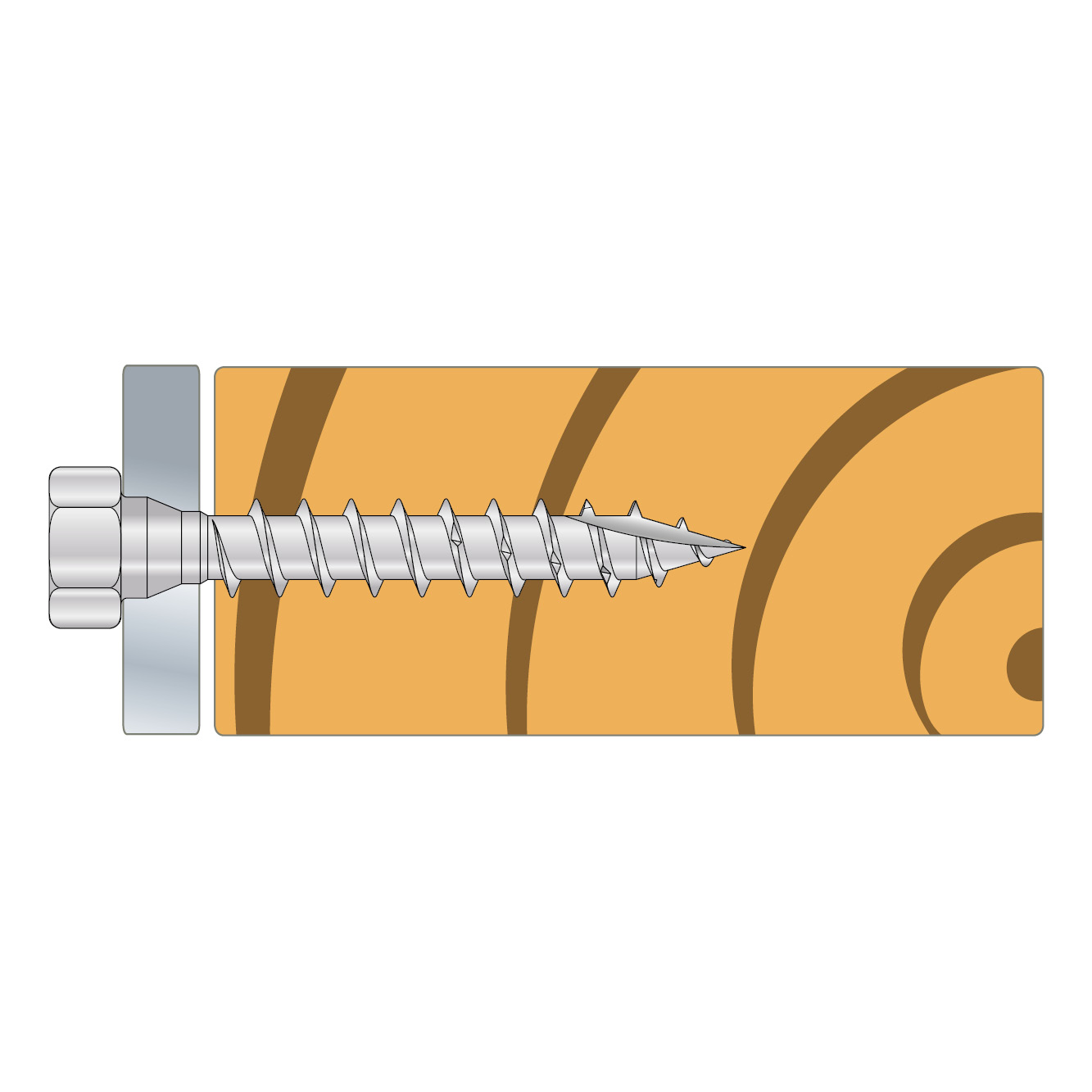 Los tornillos SSH A4 están previstos para la fijación de conectores de acero inoxidable a elementos de madera en atmósferas de alta corrosividad al aire libre.