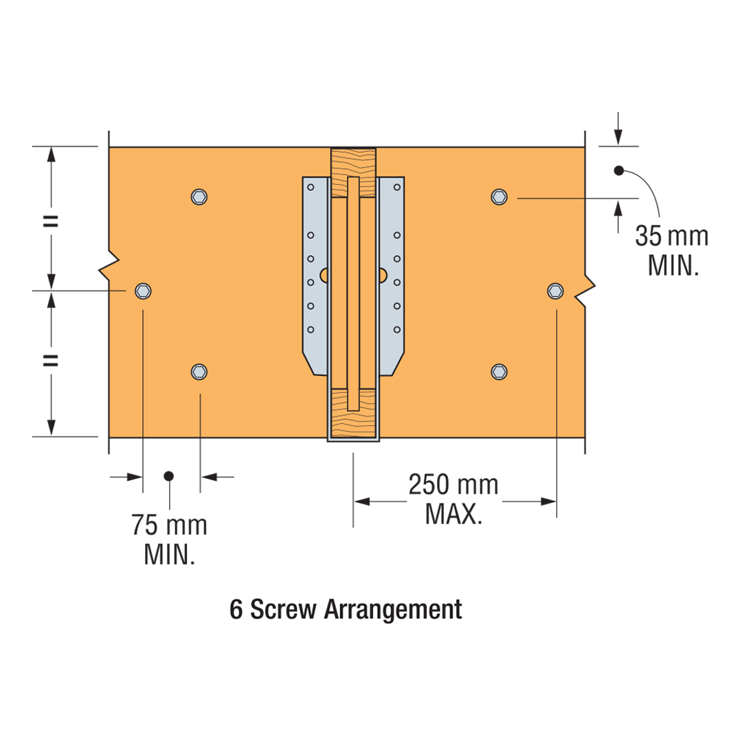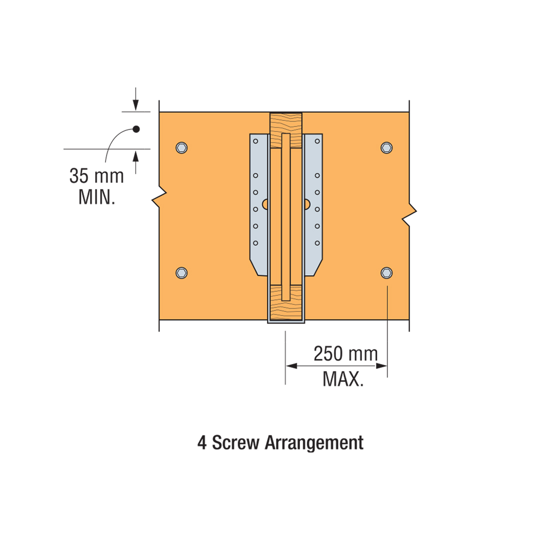 - La posición de los tornillos puede desplazarse hasta 75 mm para evitar el resto de elementos de la unión o los defectos de la madera.