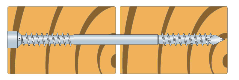 Tornillo para madera estructural con cabeza cilíndrica y doble rosca