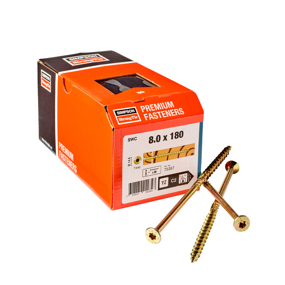 El tornillo para madera de cabeza avellanada de rosca parcial SWC de la serie Solid-Drive™ es un tornillo estructural disponible en varios tamaños y fue desarrollado para la construcción de CLT y madera laminada, así como para estructuras interiores de madera.